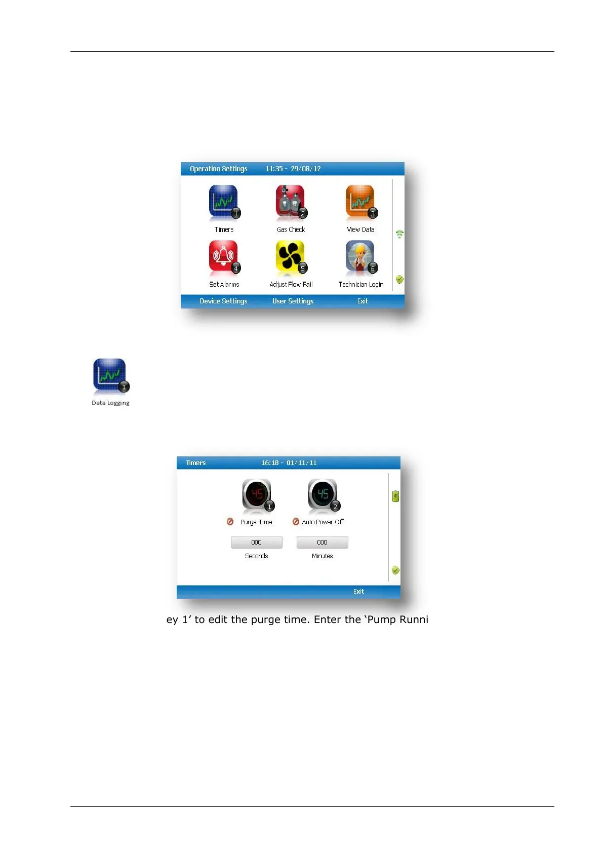 1) Select ‘Key 1’ to edit the purge time. Enter the ‘Pump Running Time’ in seconds;