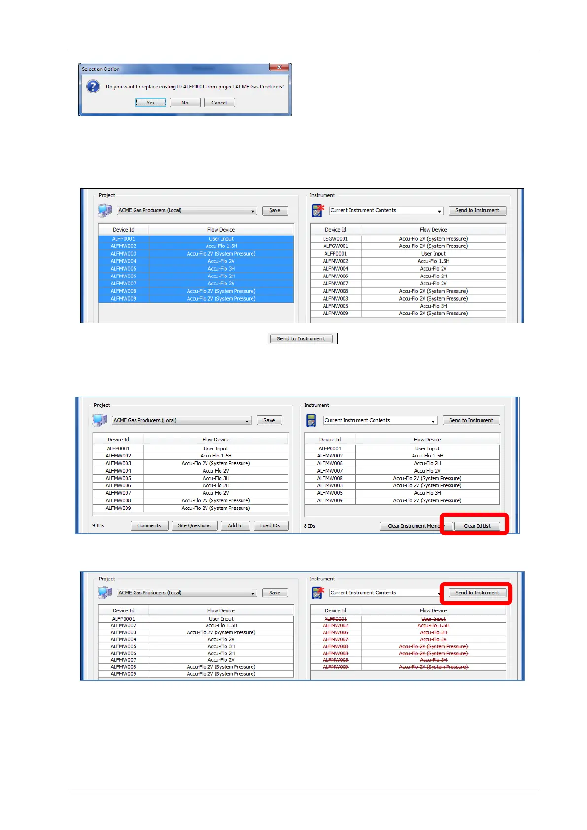 Click on the Send to Instrument button to send these IDs to the instrument.