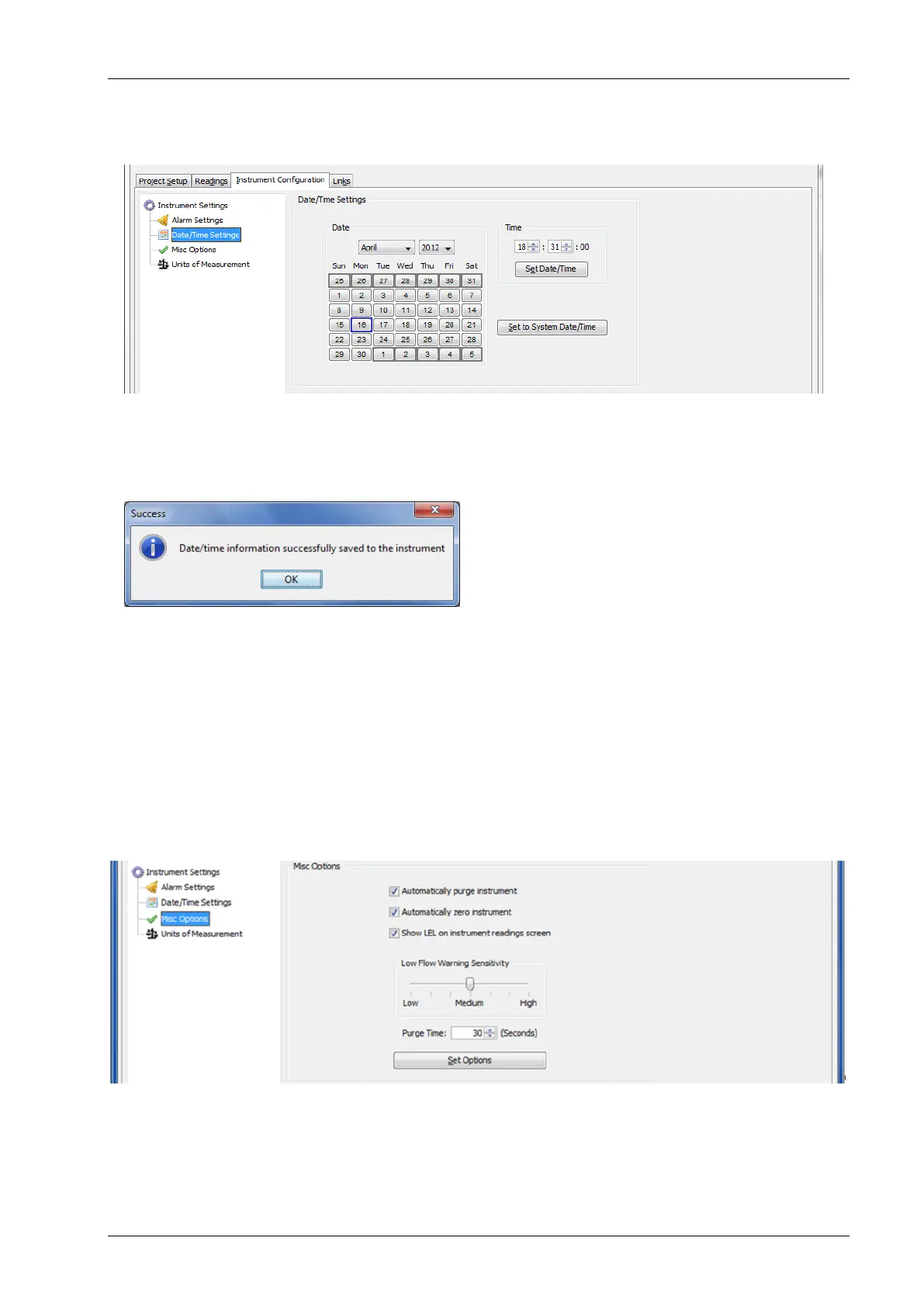 Answer OK and the instrument’s date/time will be set to that of the computer.