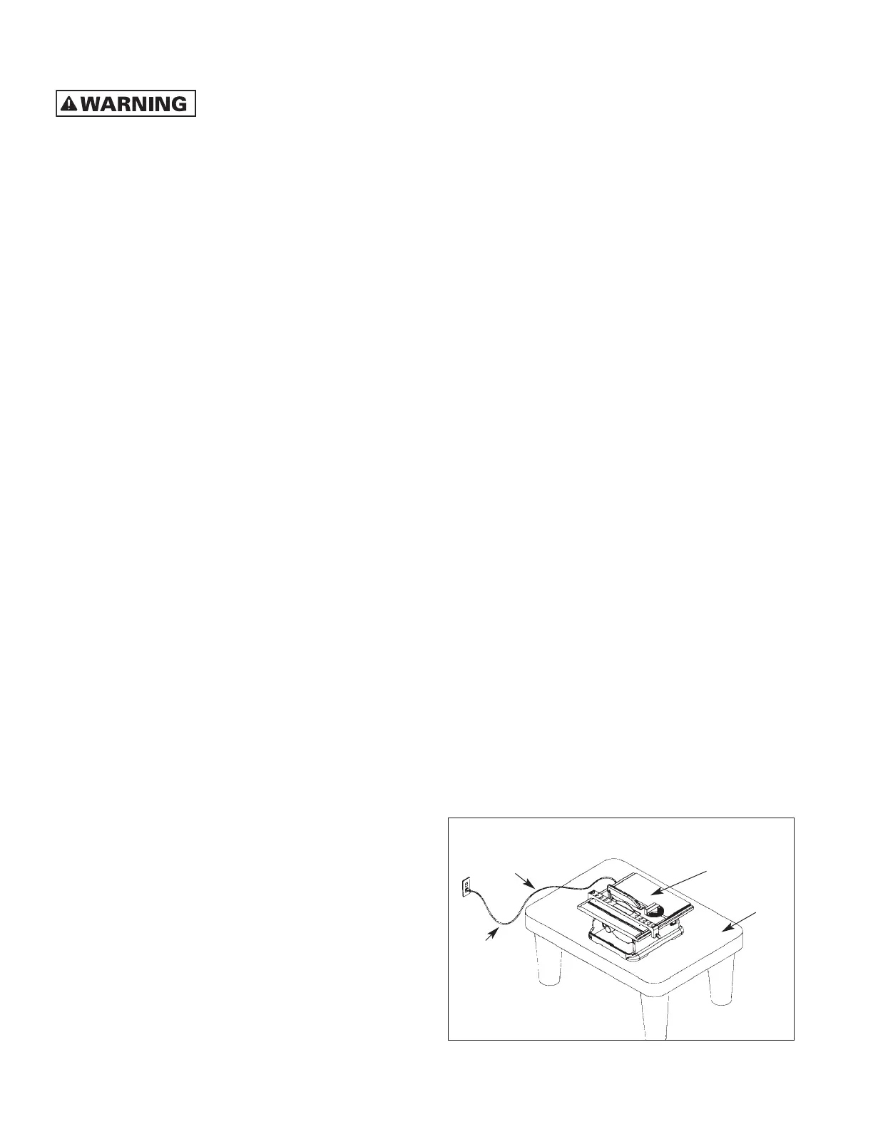 17. NEVER STAND ON TOOL. Serious injury could occur if the tile saw is tipped or if the cutting tool is