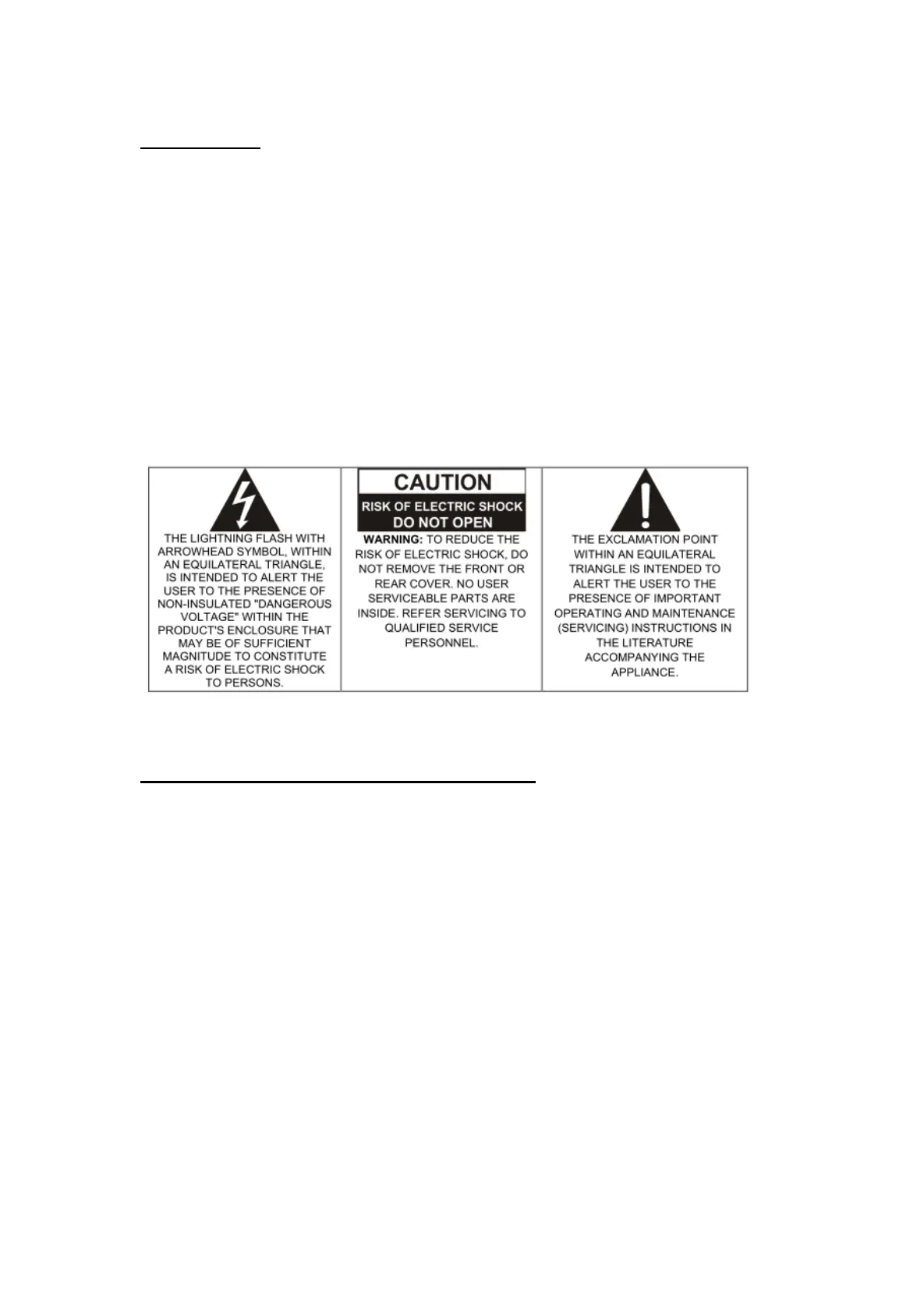 • To reduce the risk of electric shock, do not open the cabinet. No user serviceable parts are