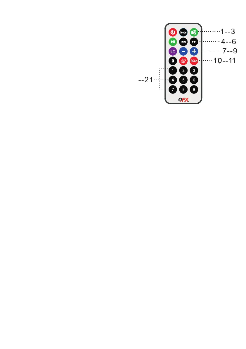 11. Presione para buscar canales en modo FM