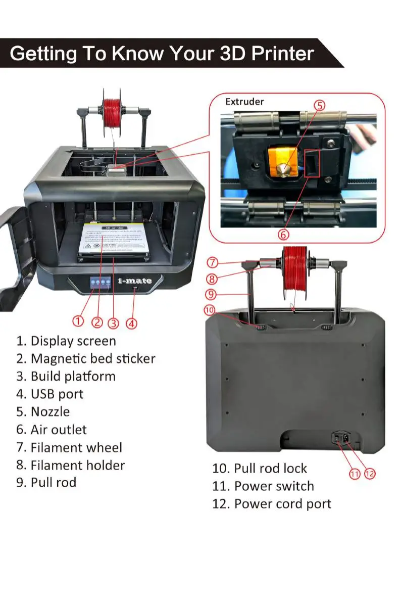 QIDI i-mate s - Getting To Know Your 3 D Printer; Printer Components Overview; Extruder Components Overview