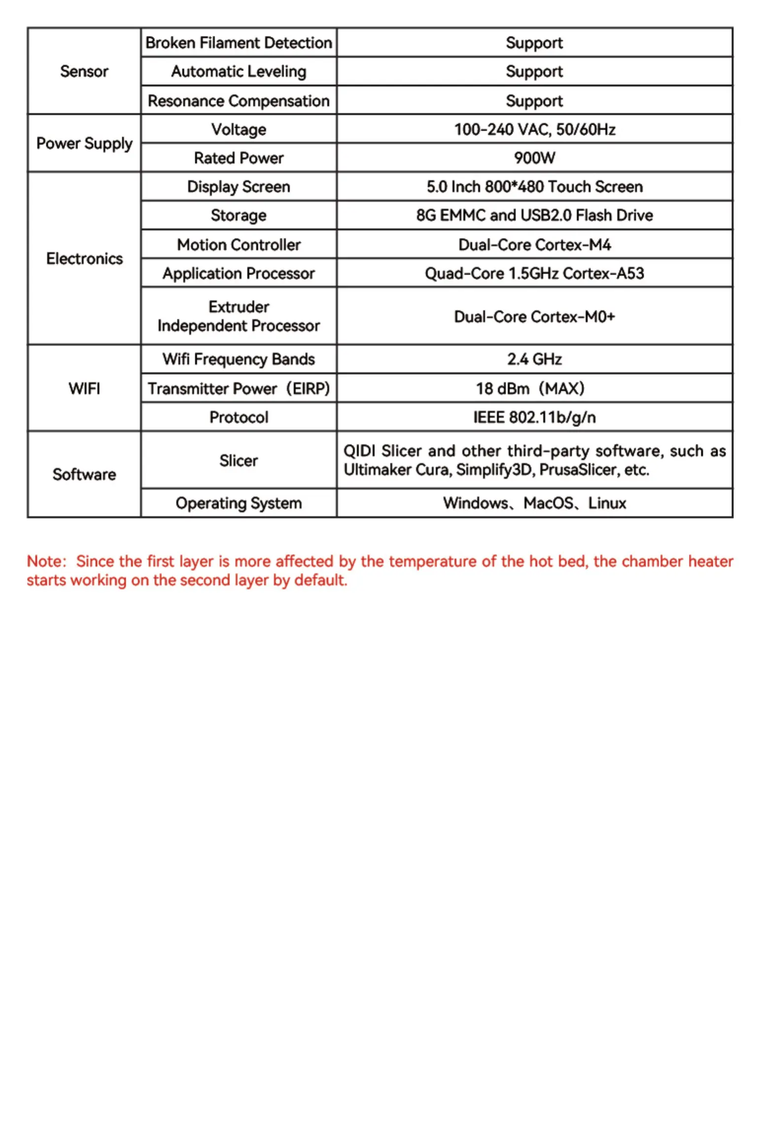 Note: Since the first layer is more affected by the temperature of the hot bed, the chamber heater