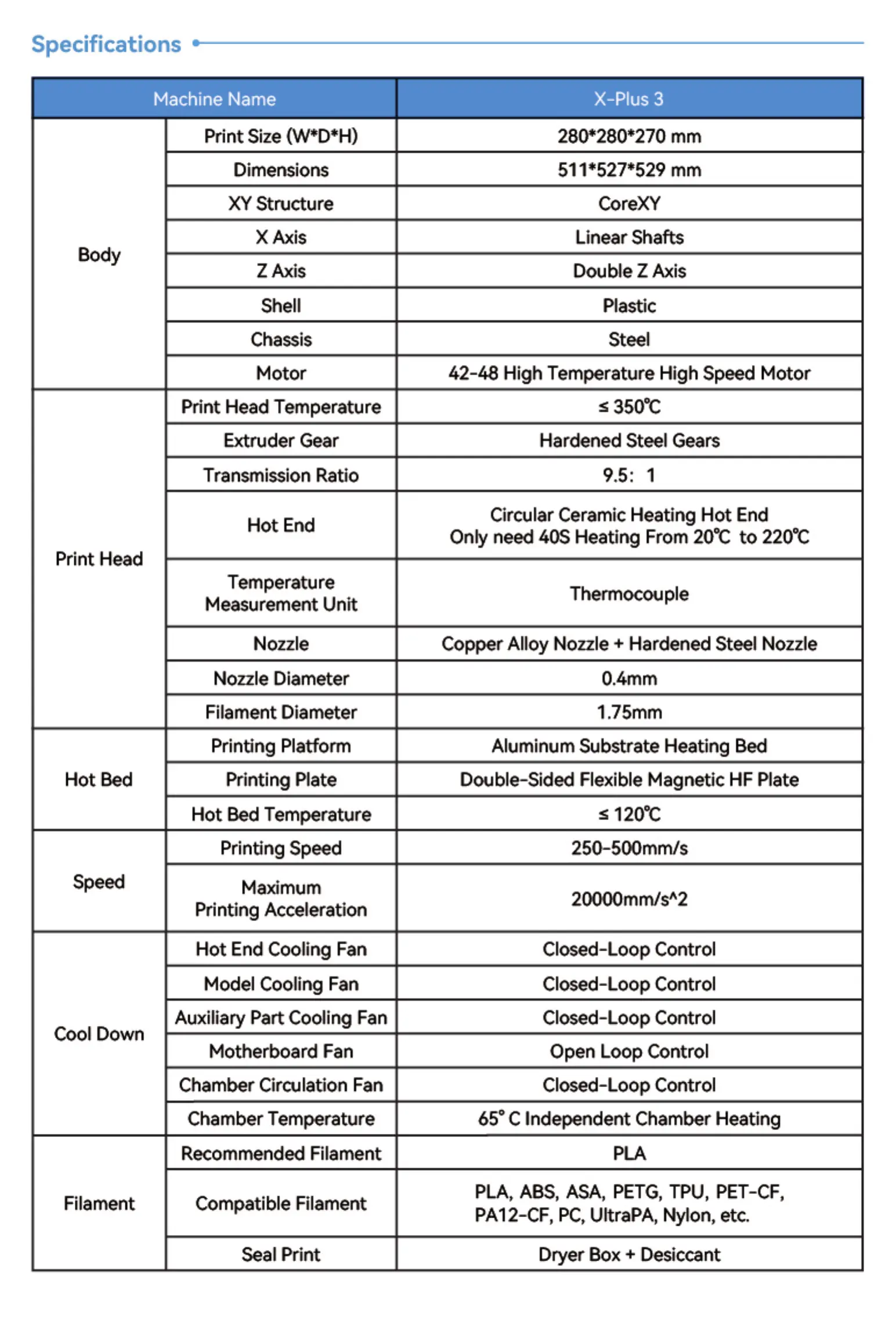 PLA, ABS, ASA, PETG, TPU, PET-CF,