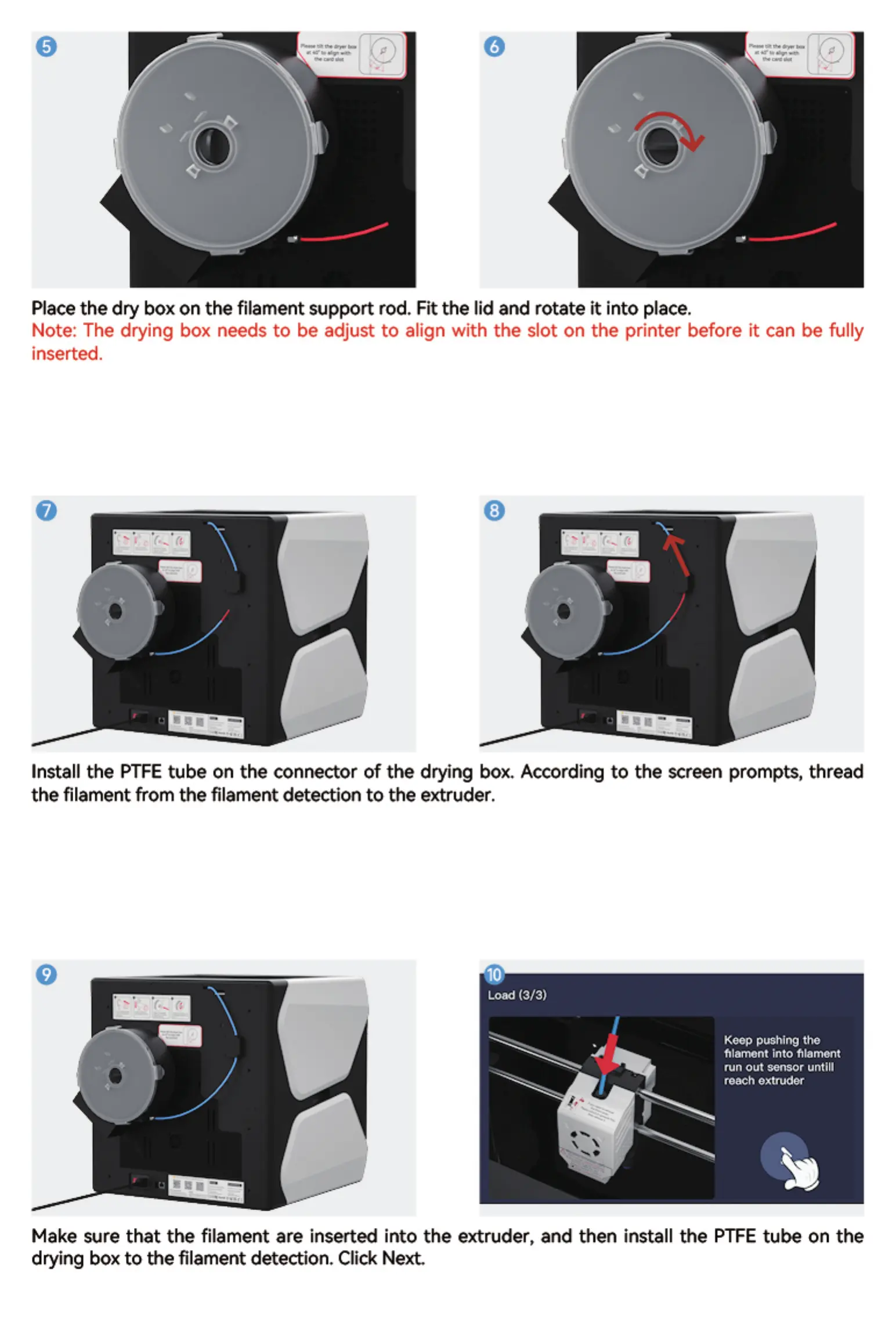 Placethe dry box on the filament support rod. Fit the lid and rotate it into place.