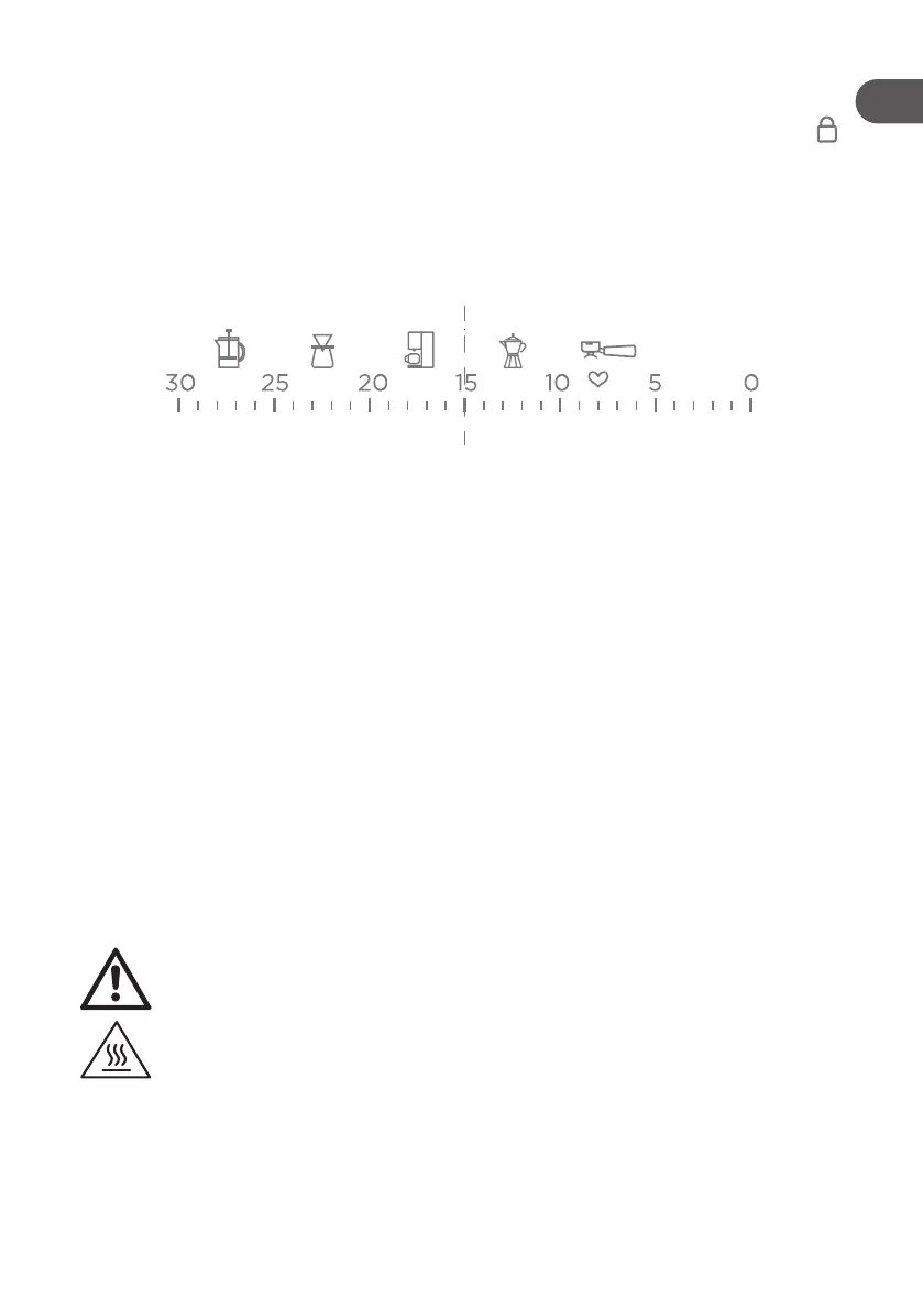 ner grind and a larger setting for a coarser grind (“0” to “30”). Adjust the setting according to