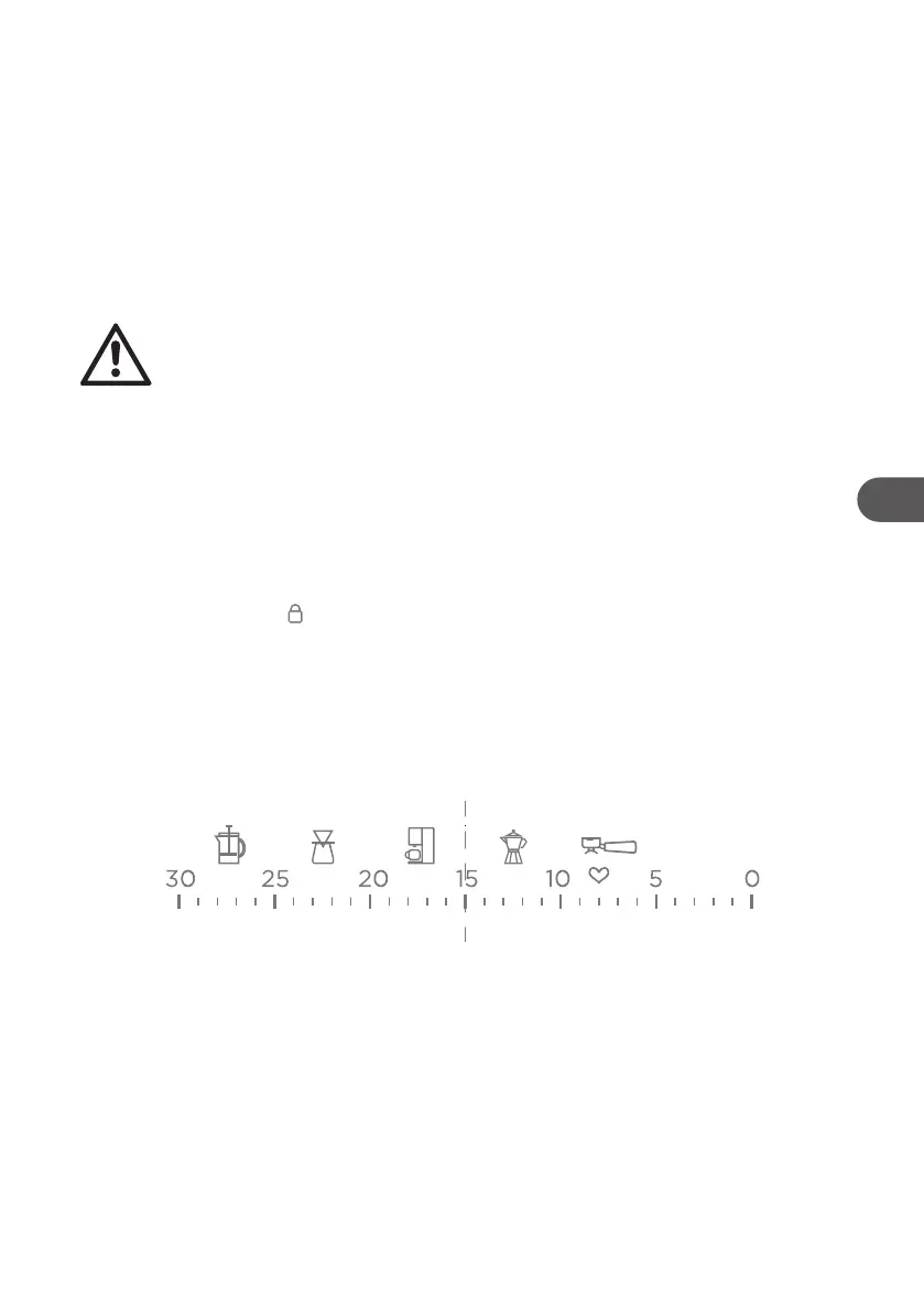 IMPORTANT: Nu reglați niciodată setarea de măcinare în timp ce râșnița funcționează, deoarece