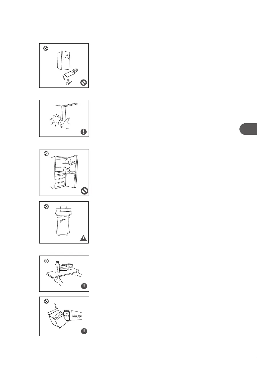 • Ne helyezzen nehéz tárgyakat a hűtőszekrény