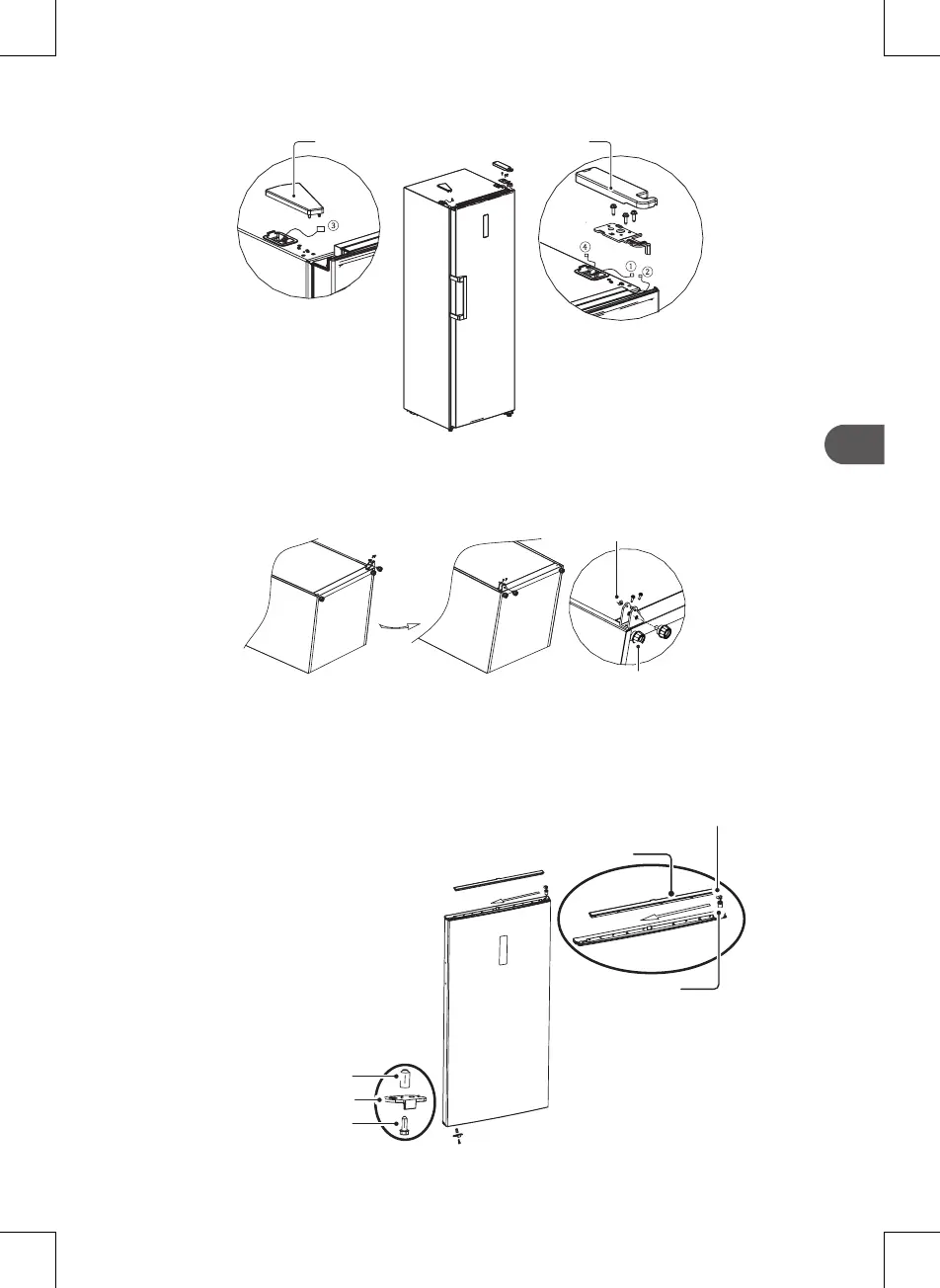 5. Távolítsa el az ajtó felső zárófedelét, szerelje fel a felső forgópánthüvelyt és az