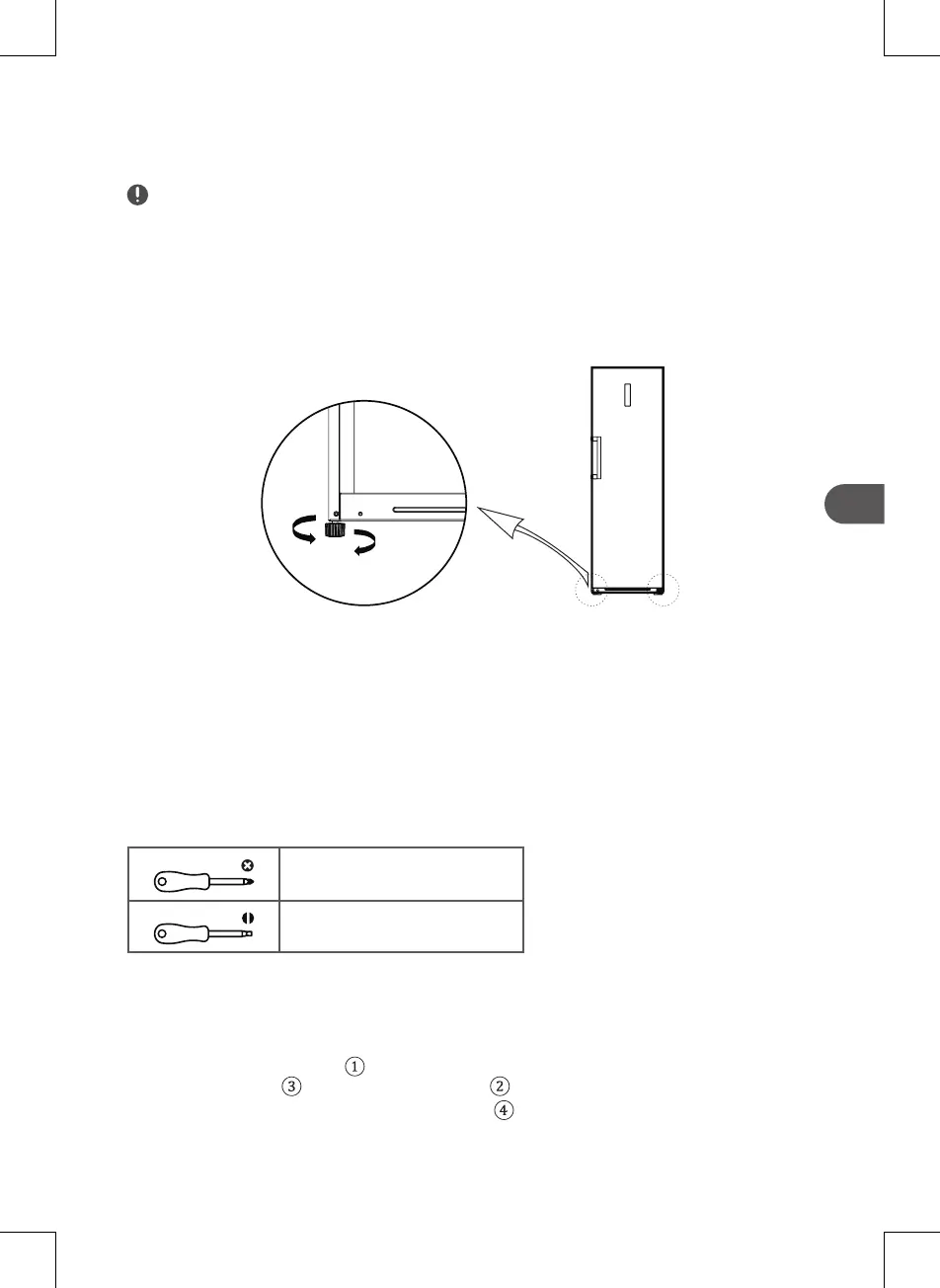 1. Rotiți picioarele în sensul acelor de ceasornic pentru a ridica frigiderul;