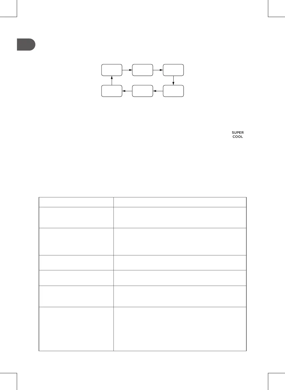 During Super cool mode, the refrigerator runs at 2°C (preset temperature), and it will
