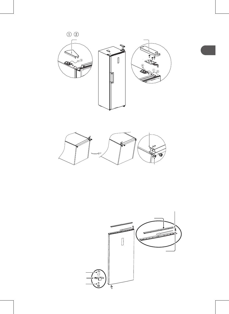 charnière, puis monter l’ensemble de la charnière de l’autre côté du réfrigérateur.