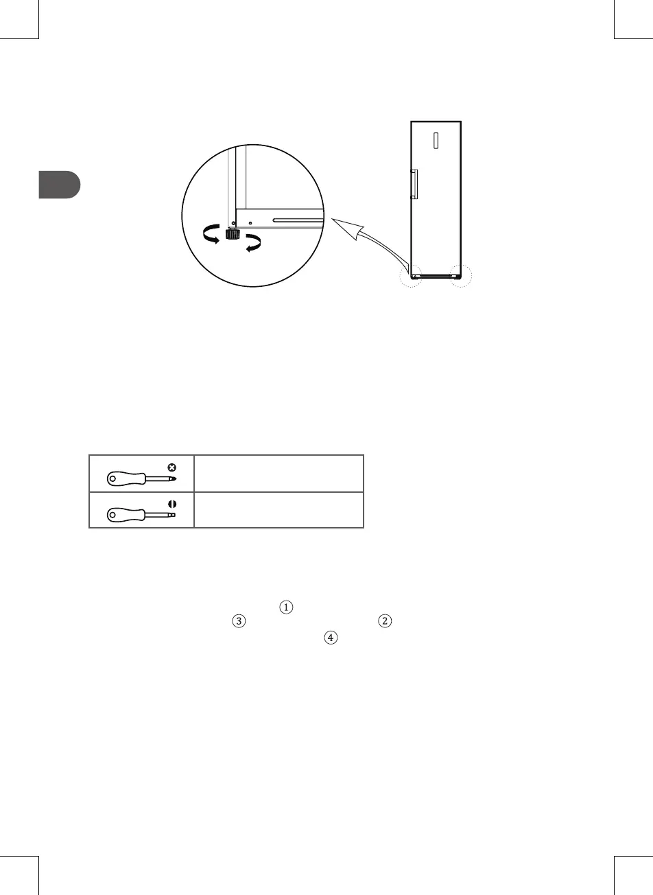 1. Gire las patas en el sentido de las agujas del reloj para elevar el refrigerador;