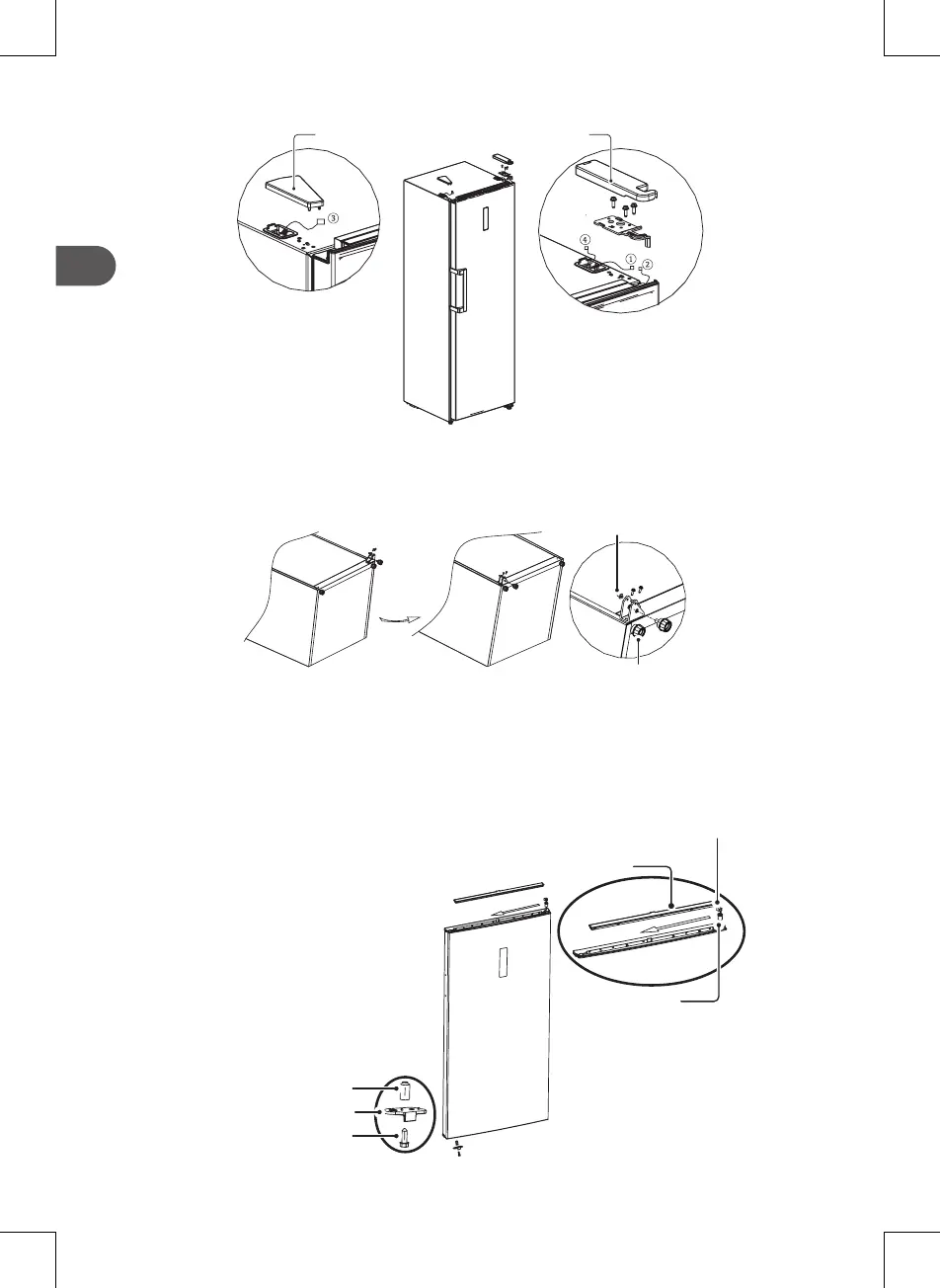 5. Retire la cubierta superior de la puerta, instale el manguito de la bisagra superior,