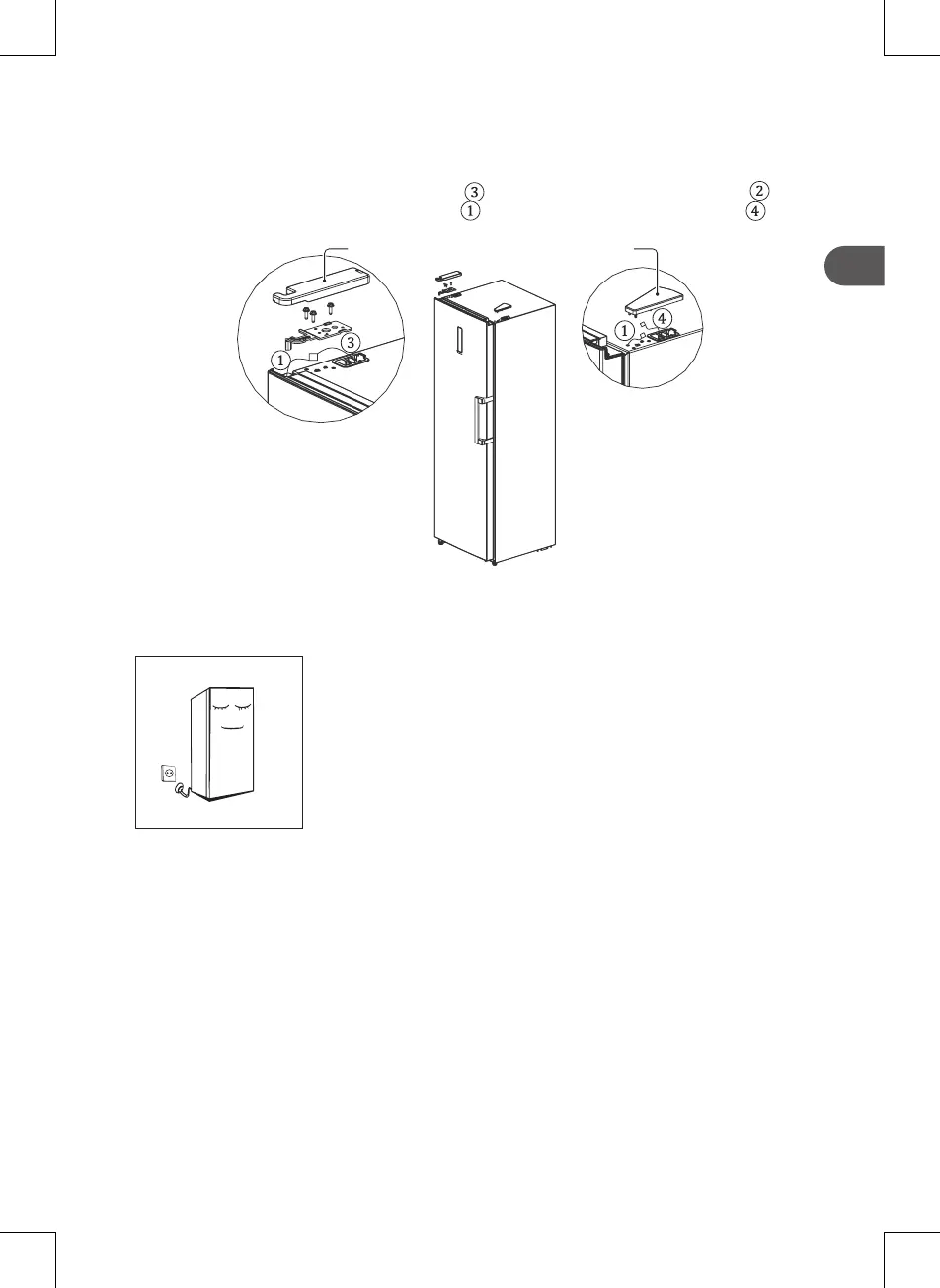 de la bolsa de accesorios; coloque la puerta en la bisagra inferior y monte la