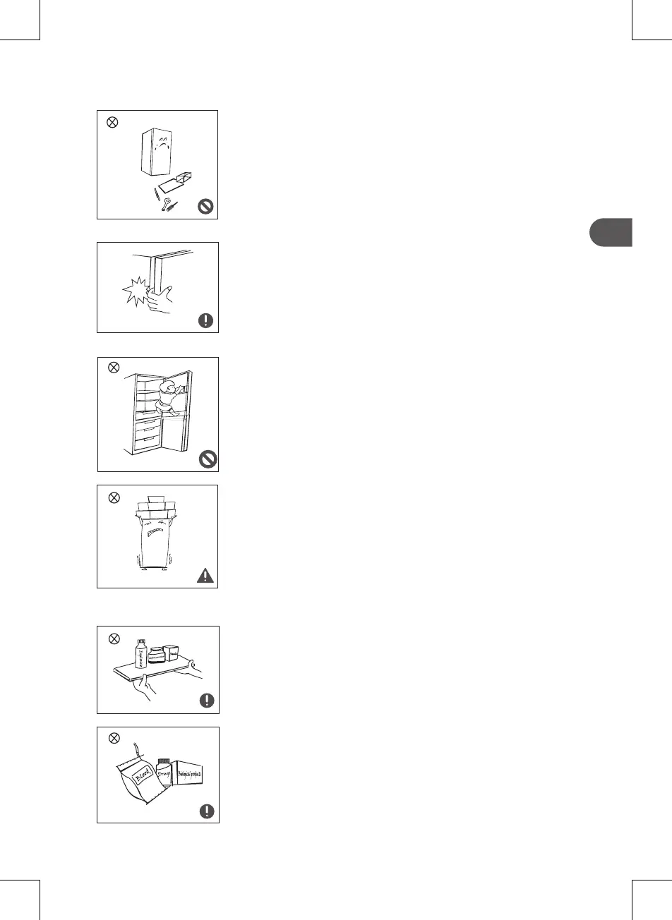 • Não coloque objetos pesados em cima do frigorífico,