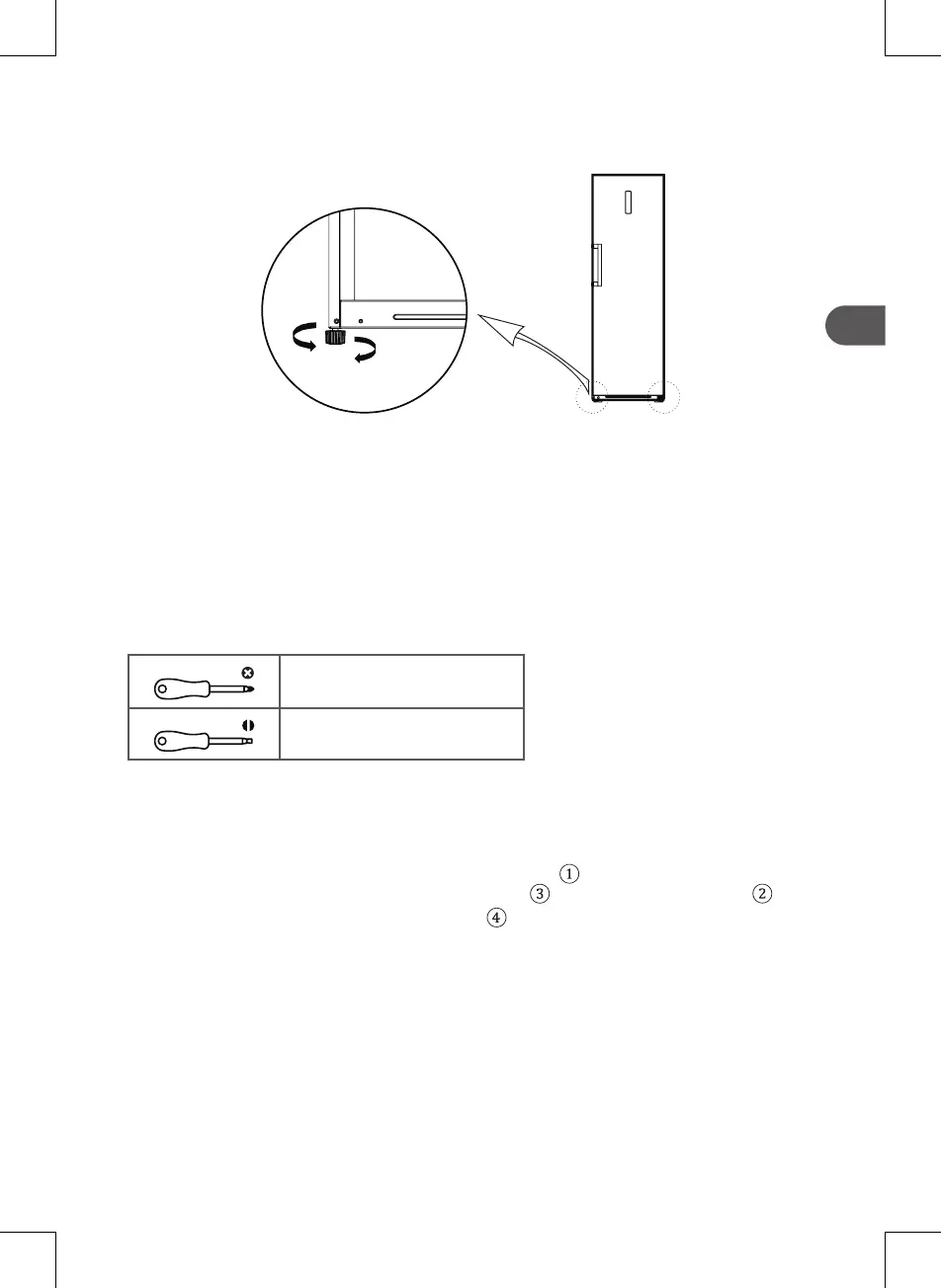 1. Rode os pés no sentido dos ponteiros do relógio para subir o frigorífico;