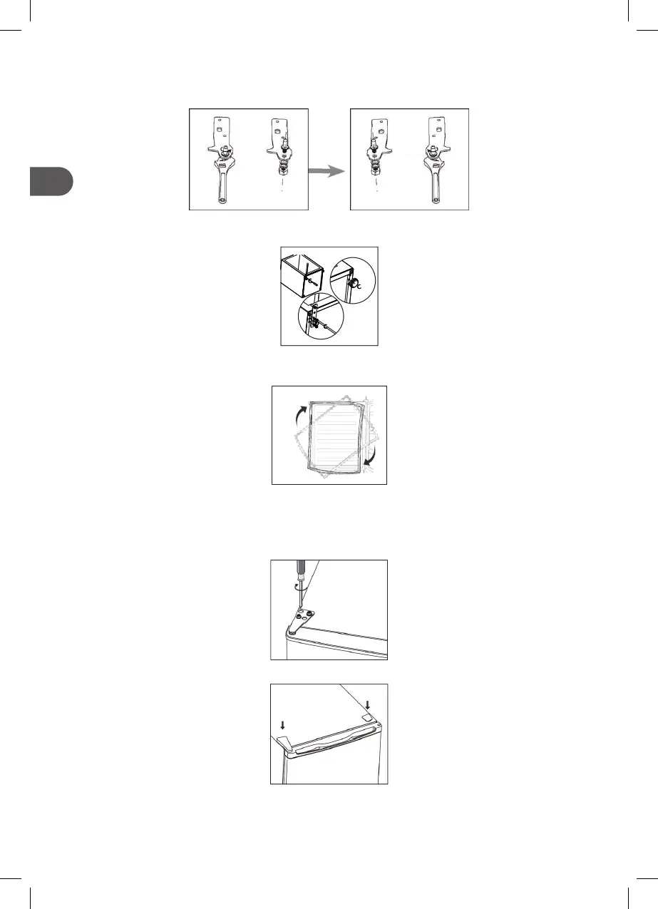 5. Desenrosque y saque el pasador de la bisagra inferior, gire el soporte y vuelva a colocar el