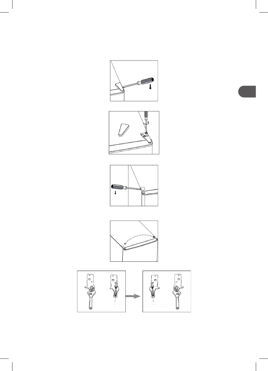 2. Desaperte os parafusos. Depois, retire o suporte da dobradiça.