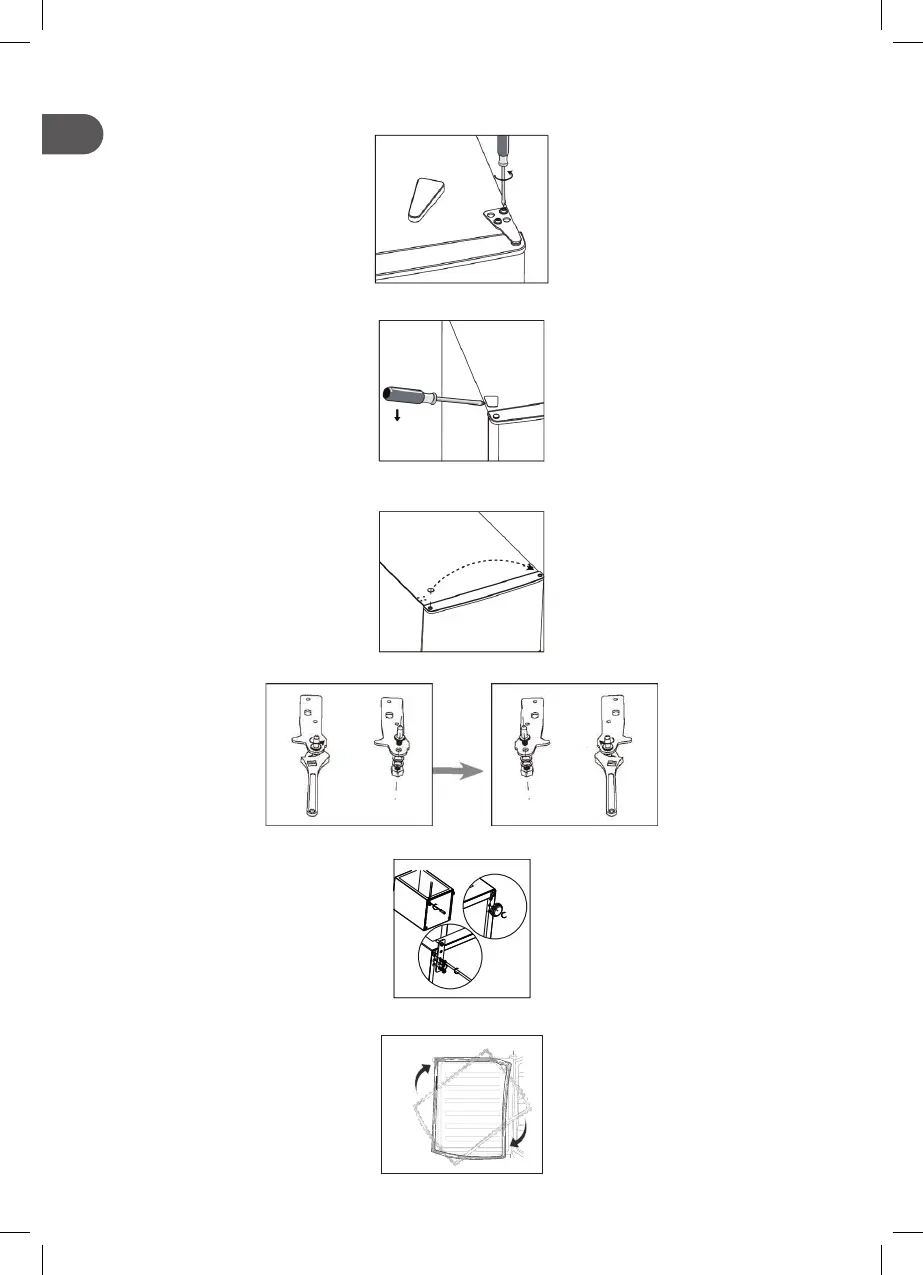 6. Ret the bracket tting the bottom hinge pin. Replace both adjustable feet.