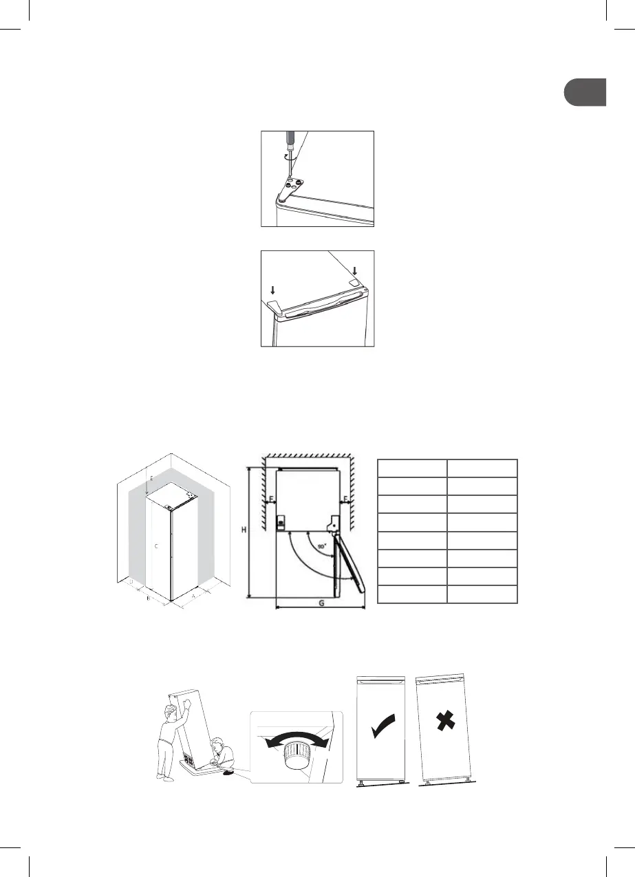 ■ If the unit is not level, the door s and magnetic seal alignments will not be covered properly.