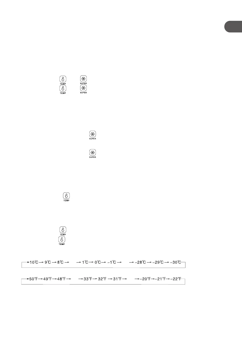 Temperature setting (For settings of -30°C/-22°F, an ambient temperature of 25°C/77°F or