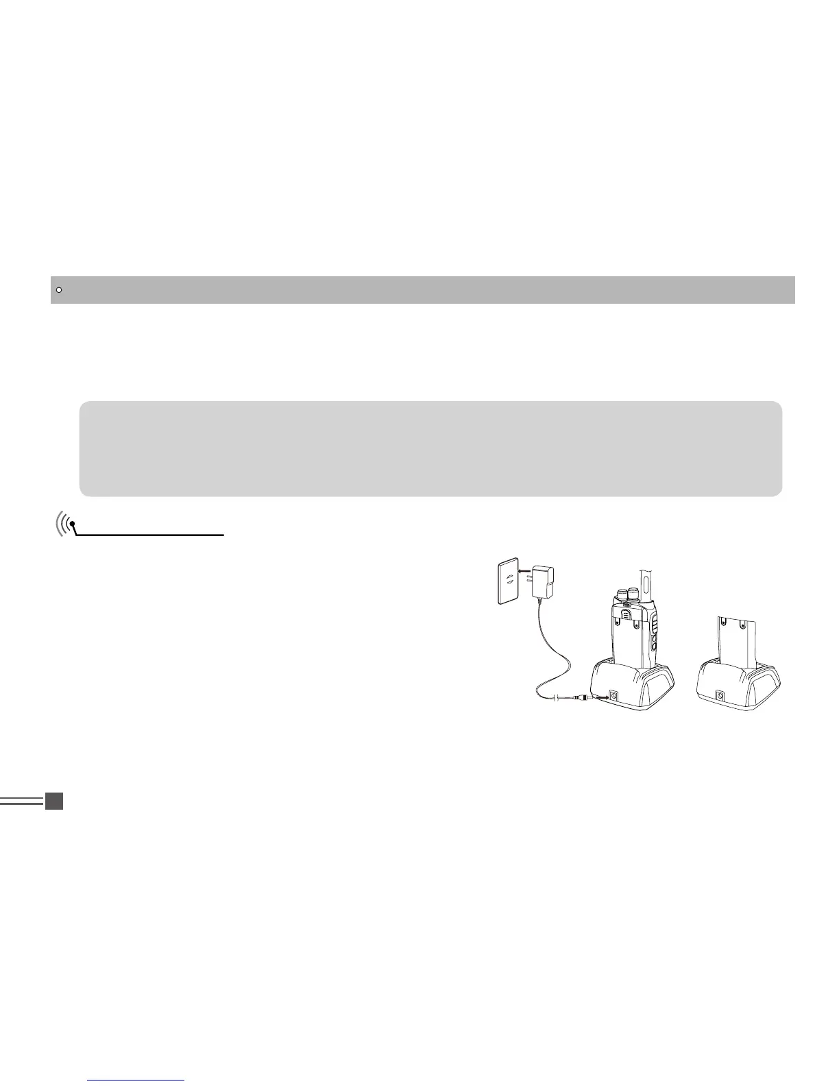 Do not charge the battery or transceiver if it is damp. Dry it before charging to avoid danger. ▼