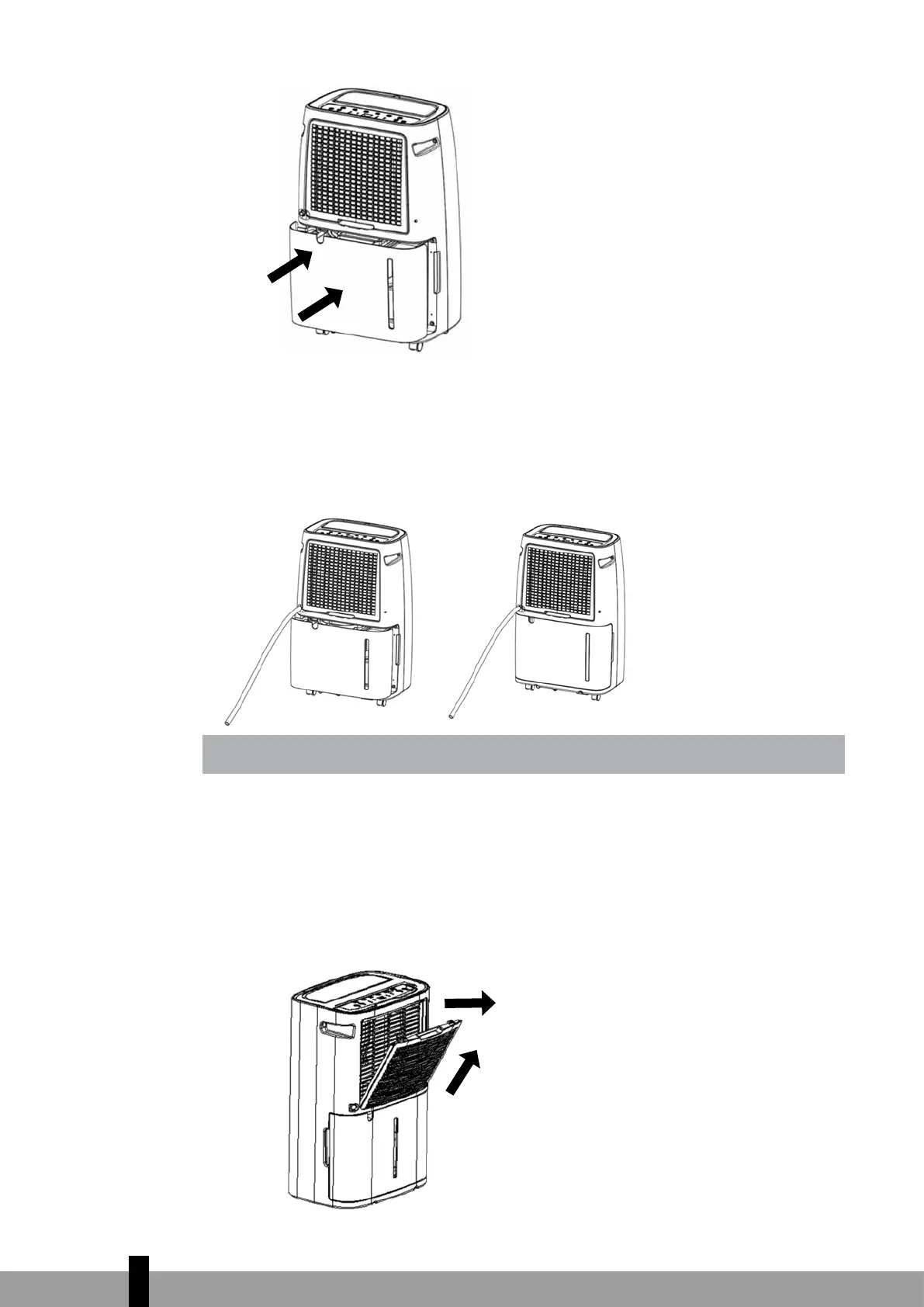 O desumidificador tem um orifício de drenagem contínua, utilizando um tubo de