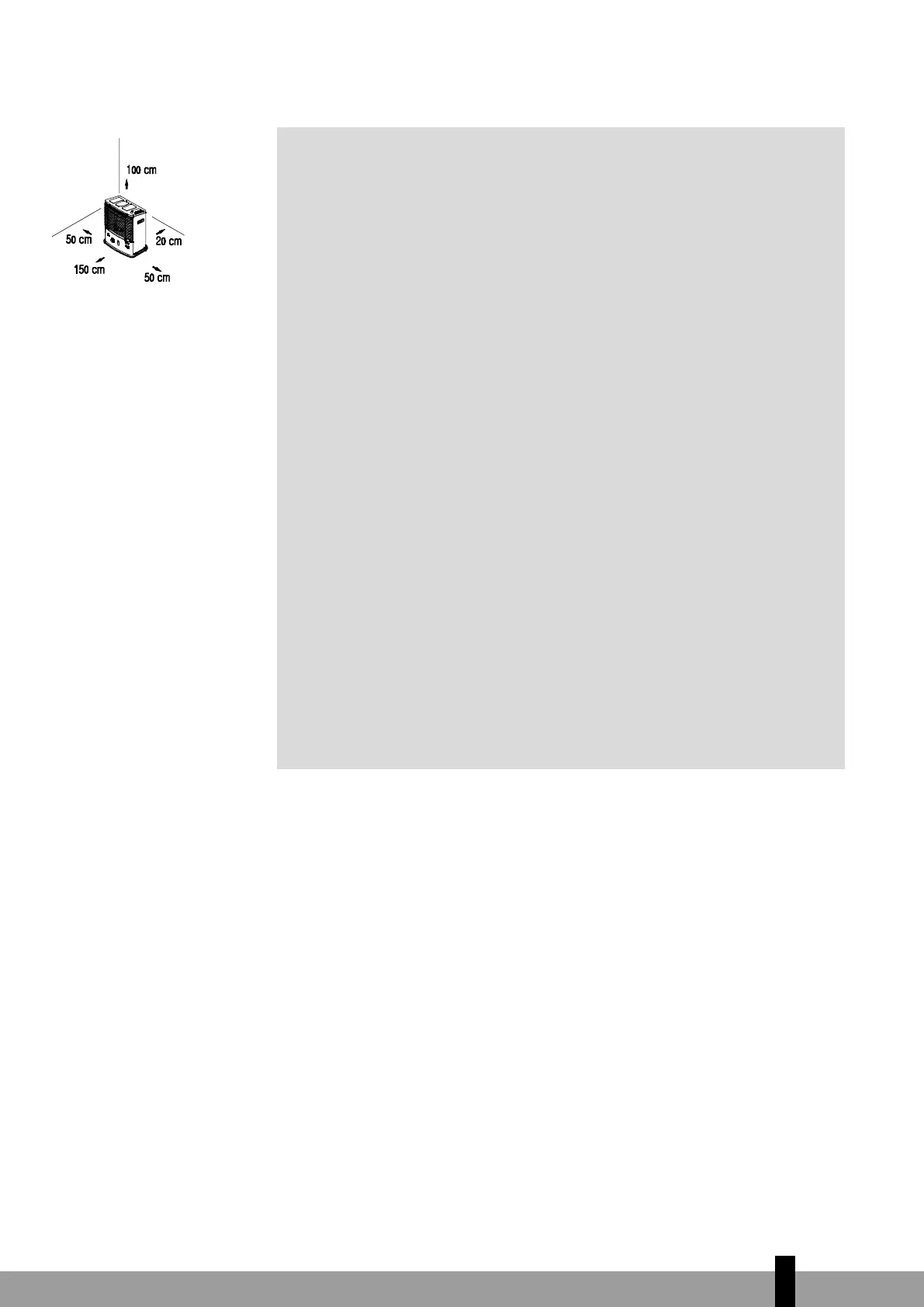 3 Position the front of the heater at a minimum distance of 1.5 metres