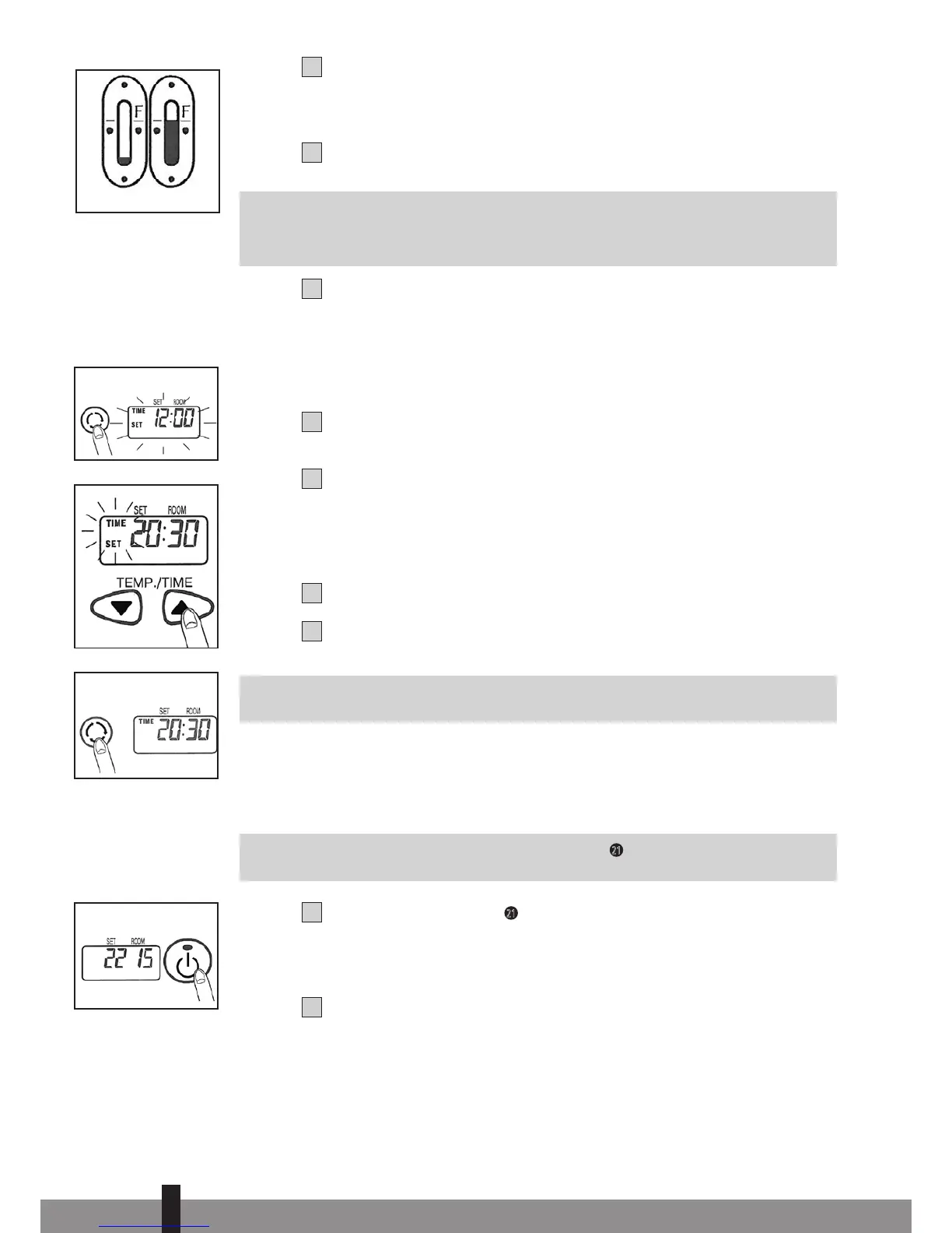 Angi tiden for å bruke varmeovnen som en klokke eller hvis timeren brukes. Du