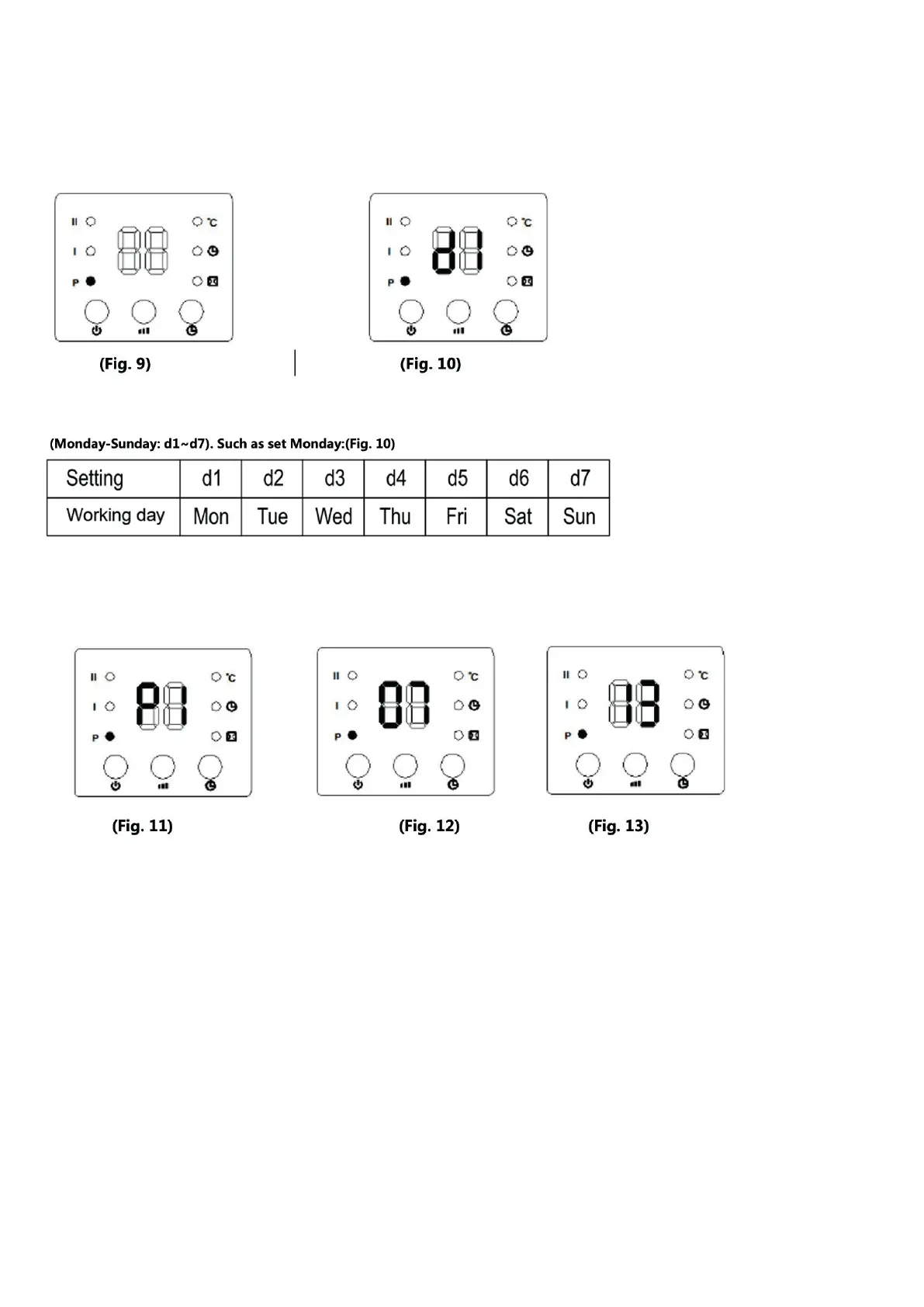 (00-24 heures). Par exemple, régler l’heure de mise en marche à 7h00 (voir figure) ; (Fig. 12)
