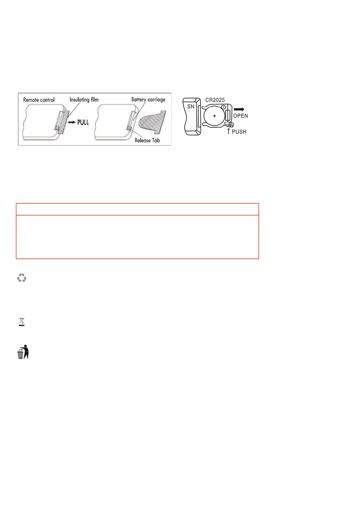 La télécommande fonctionne avec une pile au lithium CR2025 3V (non fournie).