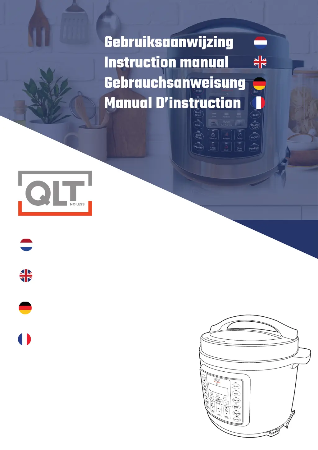 Steam leakage from the lid of your QLT Electric Pressure Cooker can occur due to several reasons: the sealing ring might be installed improperly, food debris may be attached to the sealing ring, the sealing ring could be damaged, or the lid might not be closed correctly. To resolve this, ensure the sealing ring is installed correctly, clean the sealing ring thoroughly, replace the sealing ring if damaged, and make sure to close the lid properly.