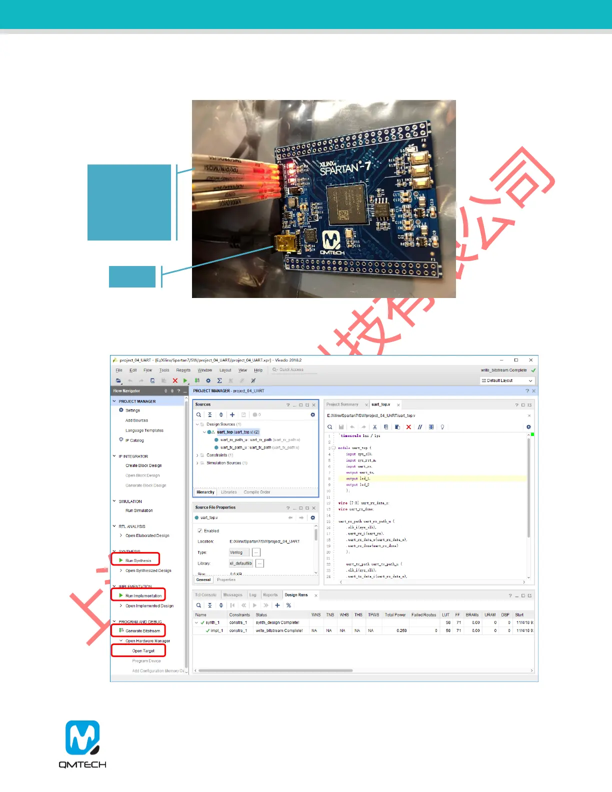 Once the FPGA test program is correctly 【Synthesized】, 【Implemented】 and 【Generated with
