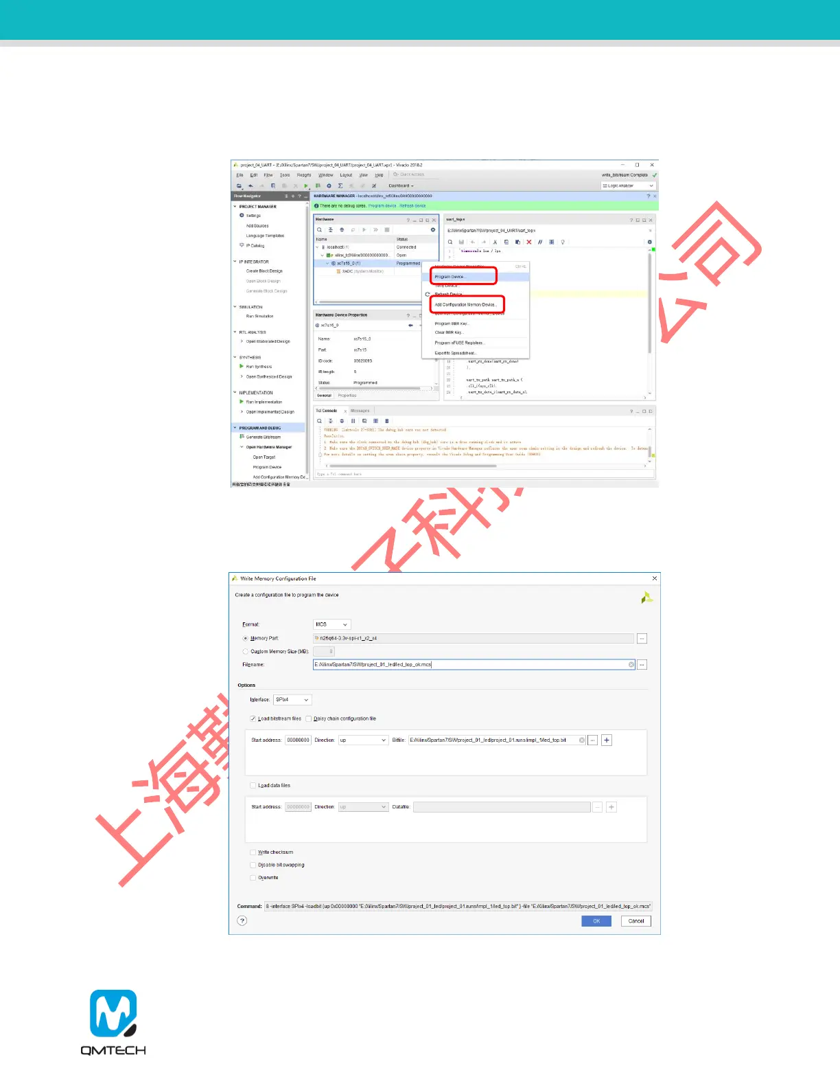 Memory Device】to program the *.mcs file into on-board SPI flash.