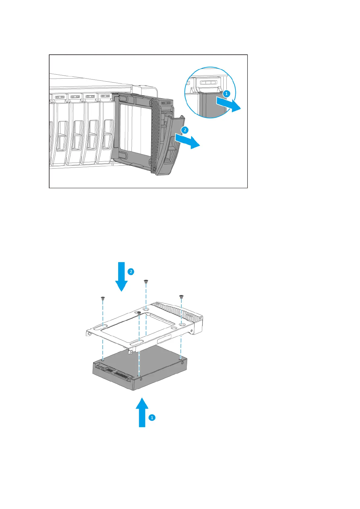 a. Place the drive on the tray so that the holes on the bottom of the drive are aligned with the holes