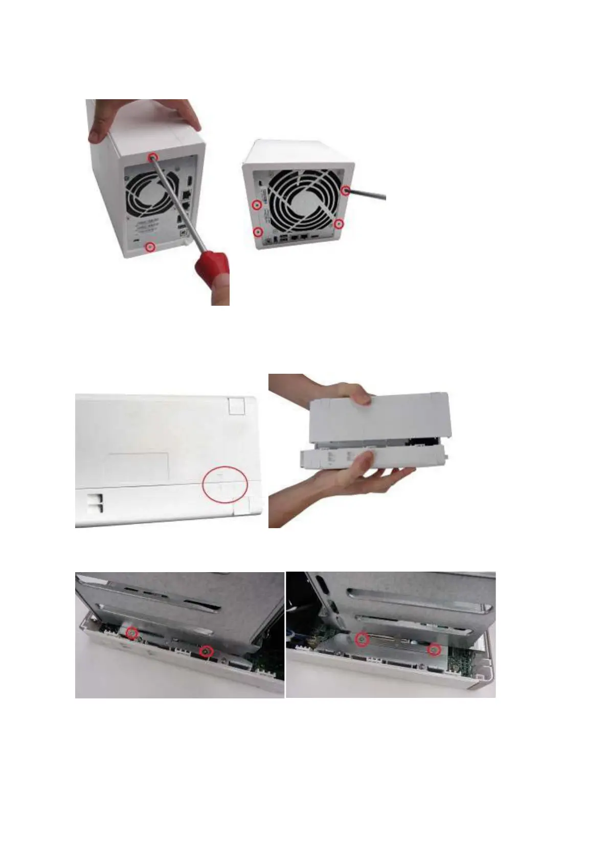 4. I f it is a 4- bay NAS, you will also need to rem ove t wo screws on t he top of t he hard drive