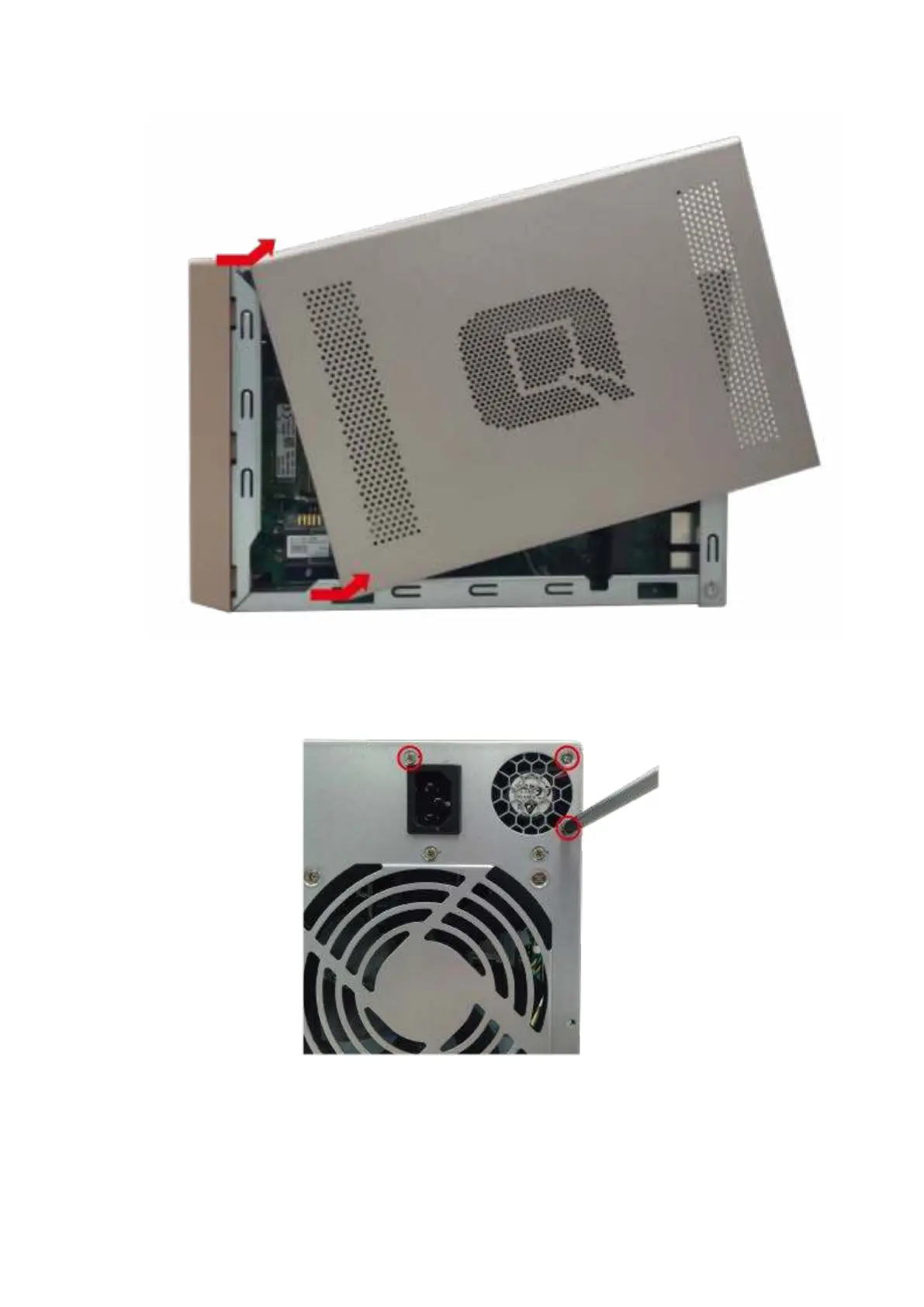 6. Loosen and rem ove the rem aining 2 screws connect ing t he PSU t o t he case.