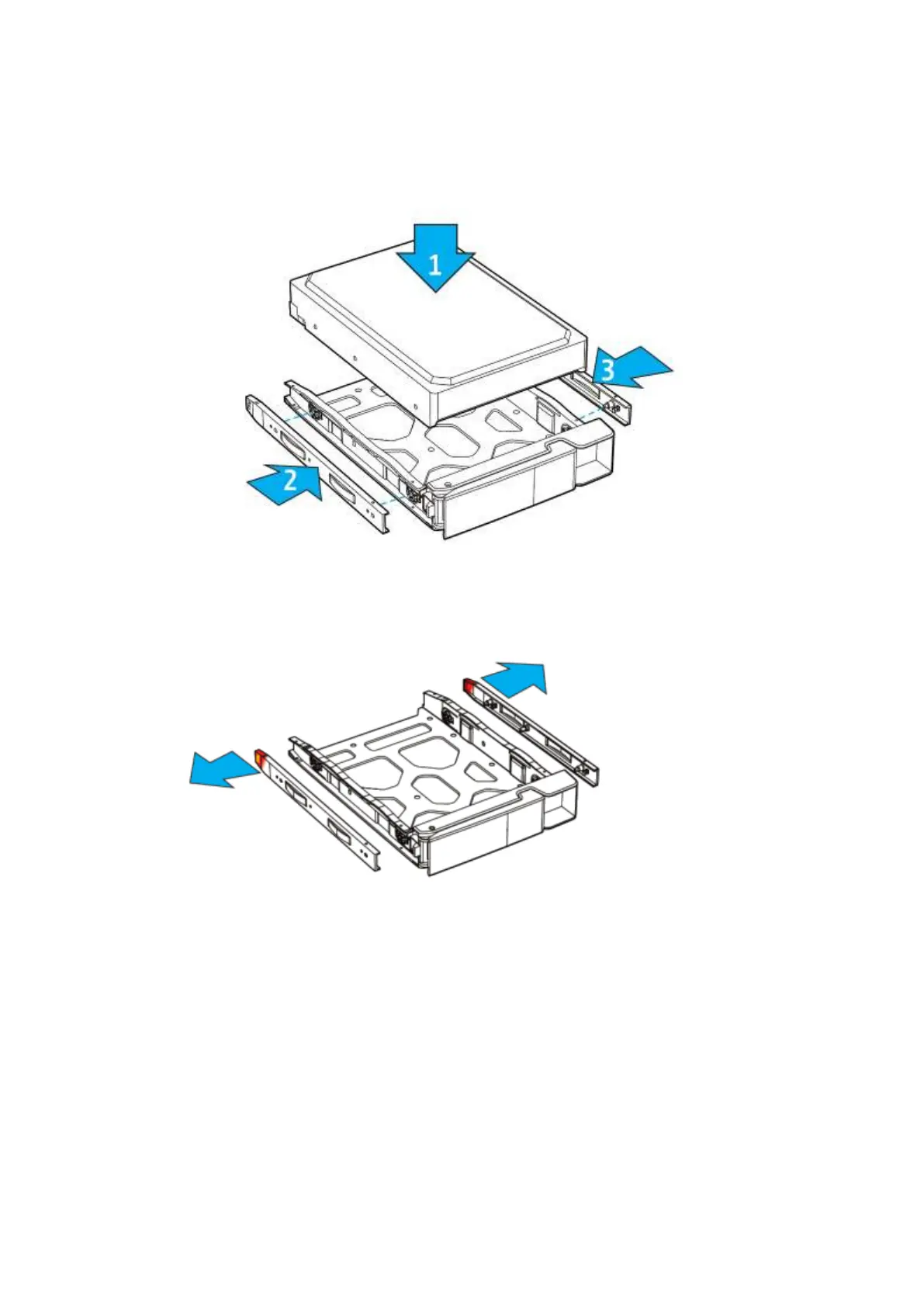 ii. Place hard drive onto tray so t hat t he bot t om holes of the t ray are aligned with the