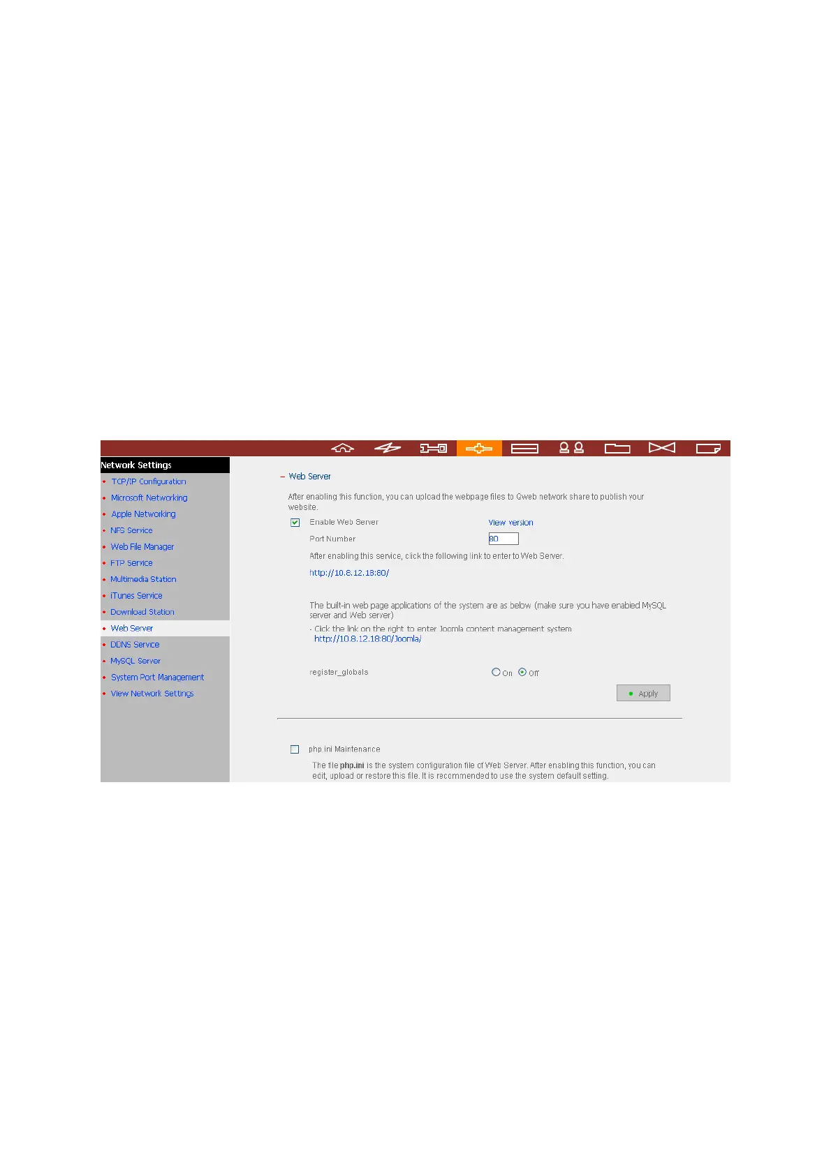 The NAS enables you to upload web pages and manage your own website easily by Web