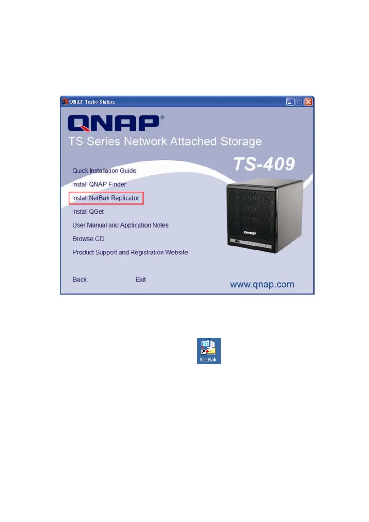 1. Select Install NetBak Replicator in the NAS CD-ROM.