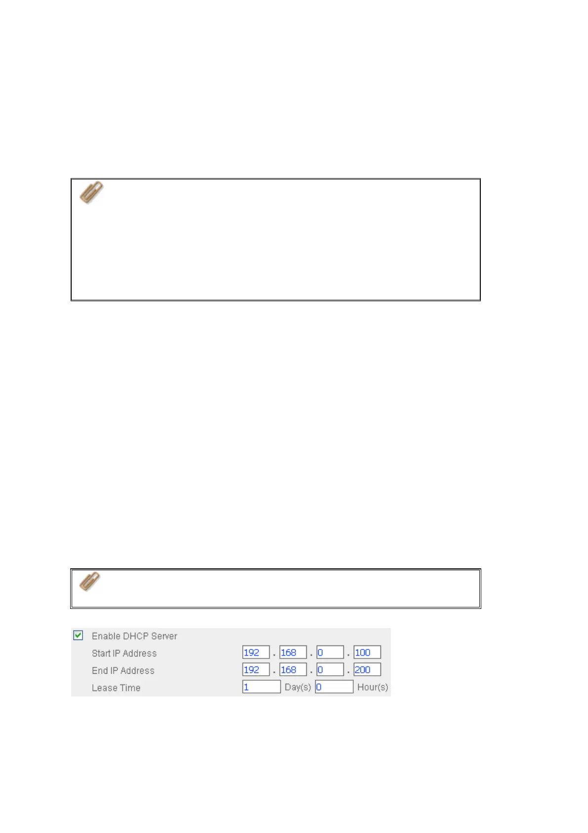 Note: If there is an existing DHCP server in your LAN, do not enable