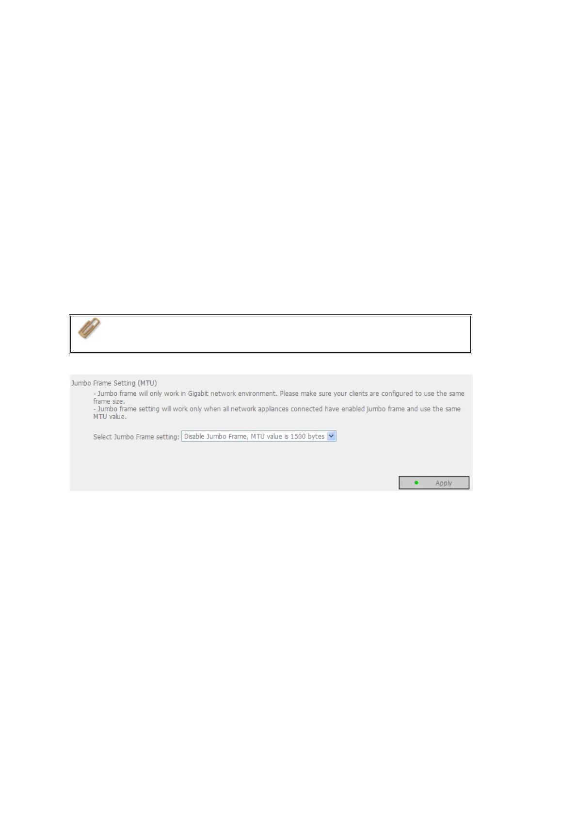 Note: Jumbo Frame setting is valid in Gigabit network environment