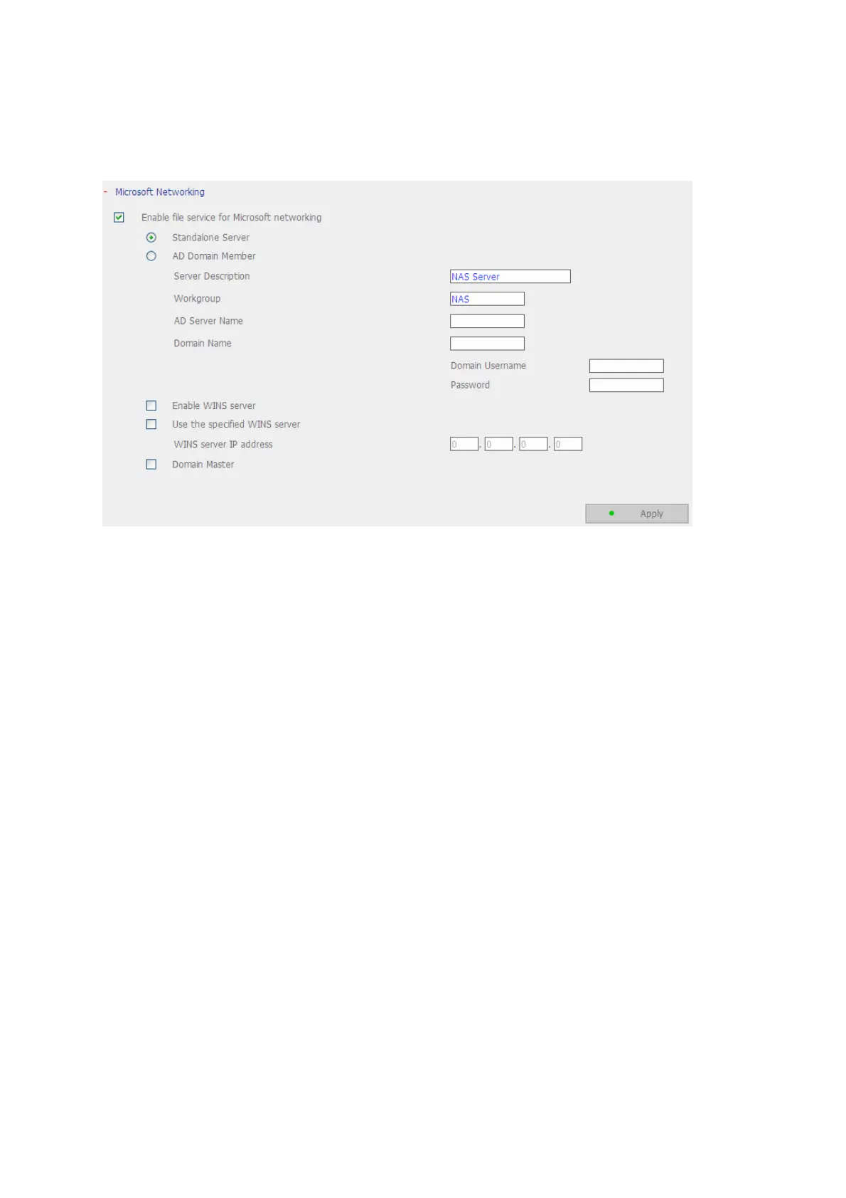 Specify the workgroup the NAS belongs to. The workgroup is a computer group