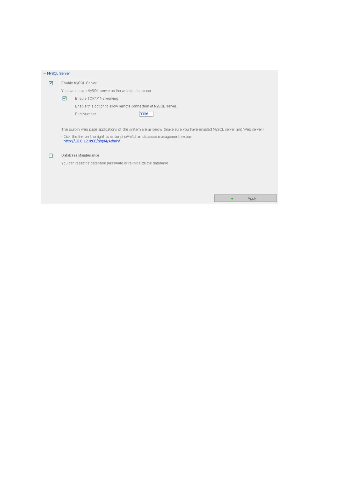 You can enable this option to configure your NAS’s MySQL Server as a database server of