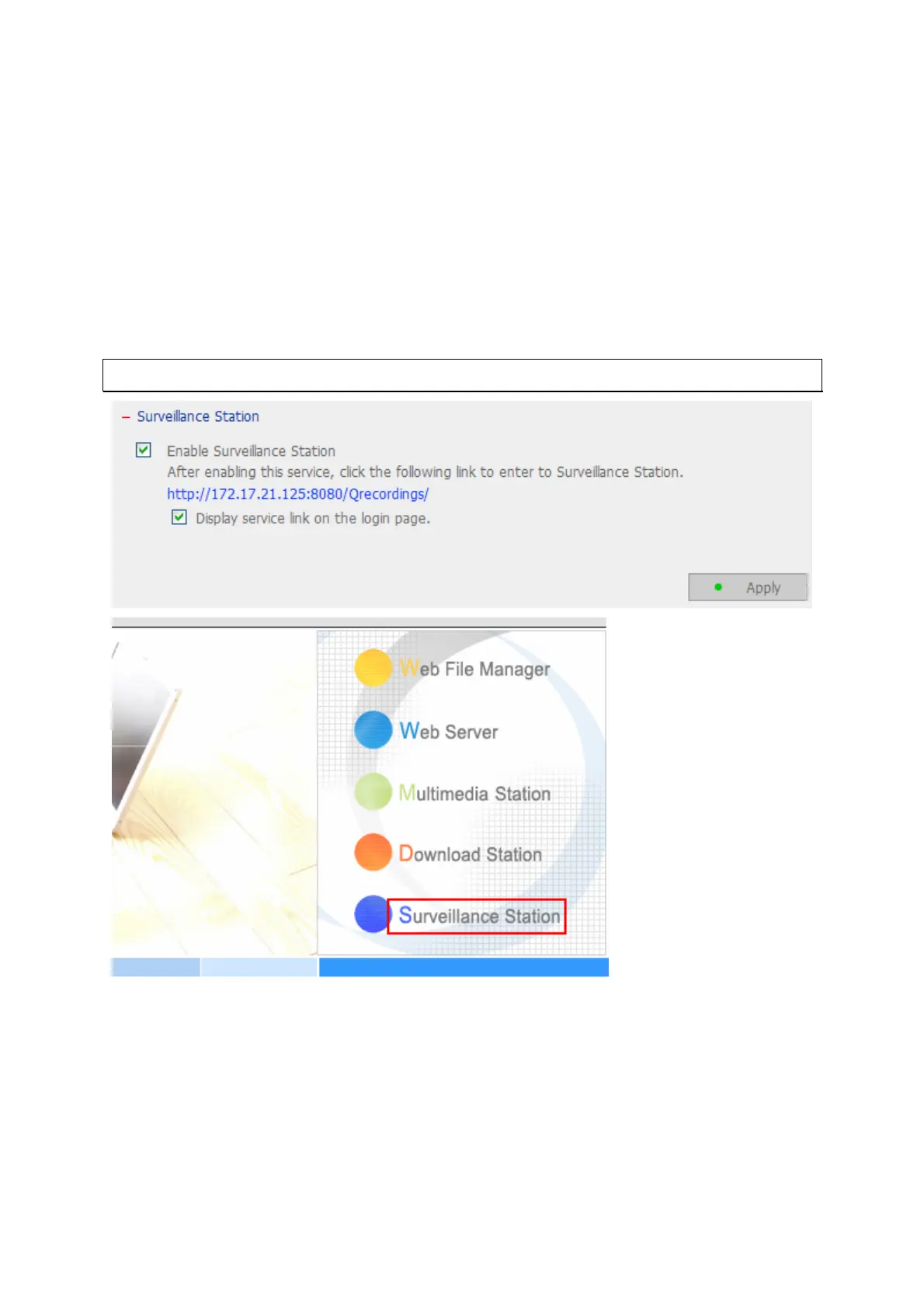 or click “Surveillance Station” on the login page to enter the Surveillance Station.