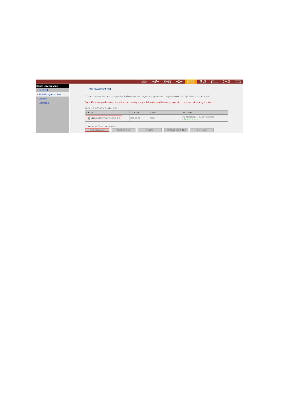 This function enables capacity expansion, RAID migration, or spare drive configuration