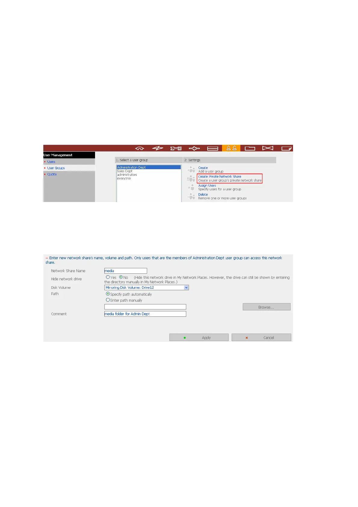 the network share, e.g. media folder for Admin Dept and click Apply.
