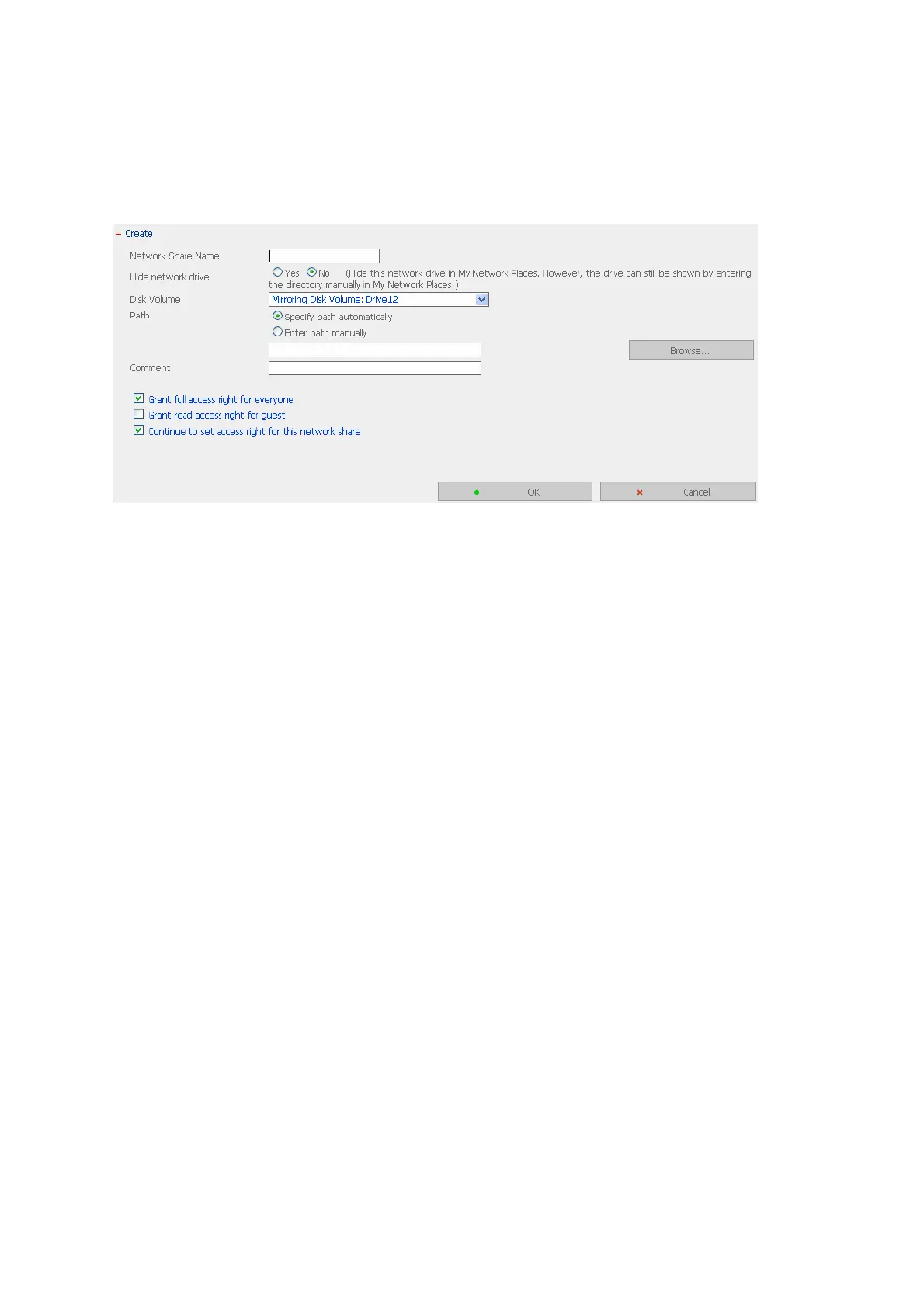 Enter a brief description for the share folder. The comment cannot exceed 128